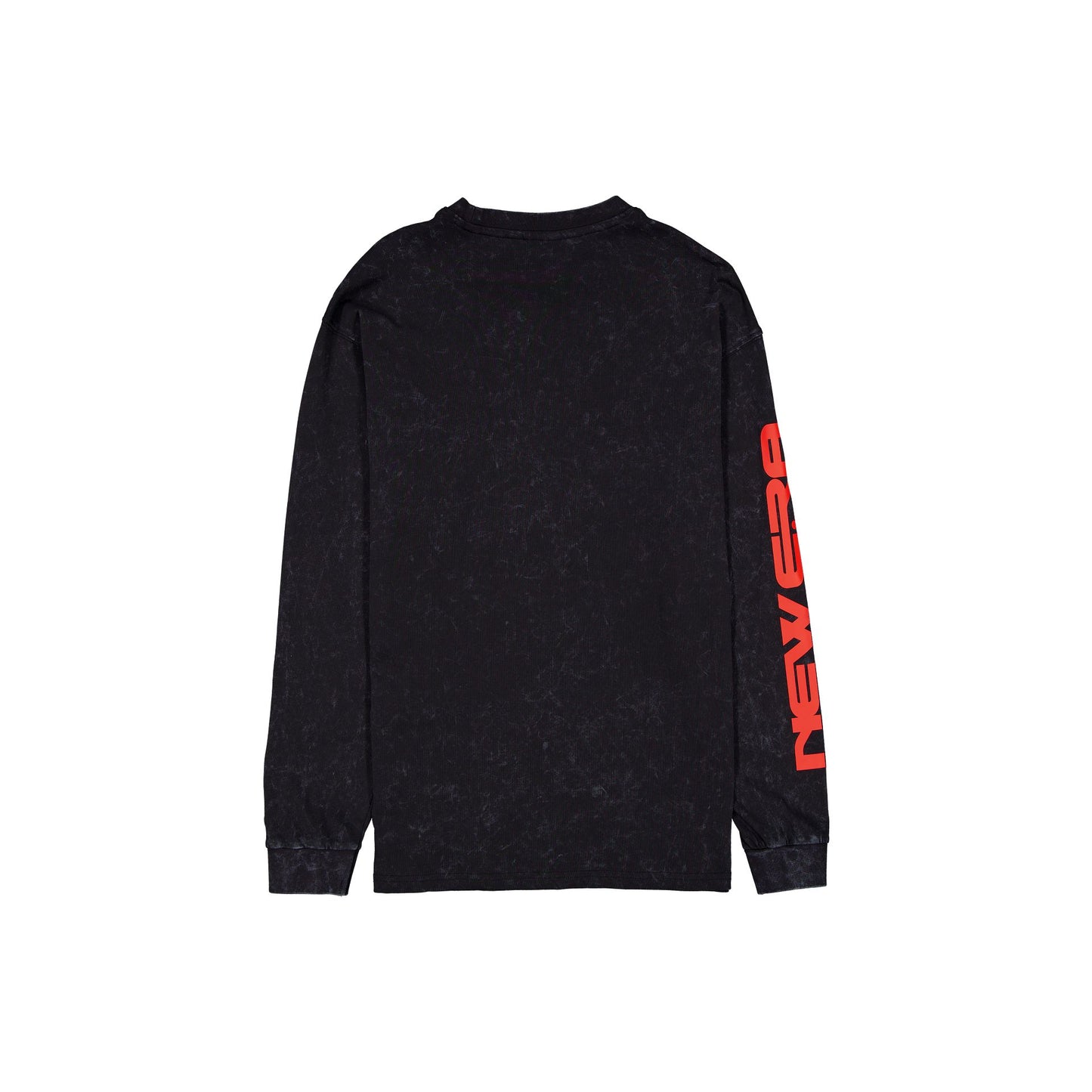 The Oracle Red Bull Racing Graphic Black Long-Sleeve T-Shirt features pigment print Oracle Red Bull Racing patches throughout with a New Era Racing wordmark at the right sleeve.