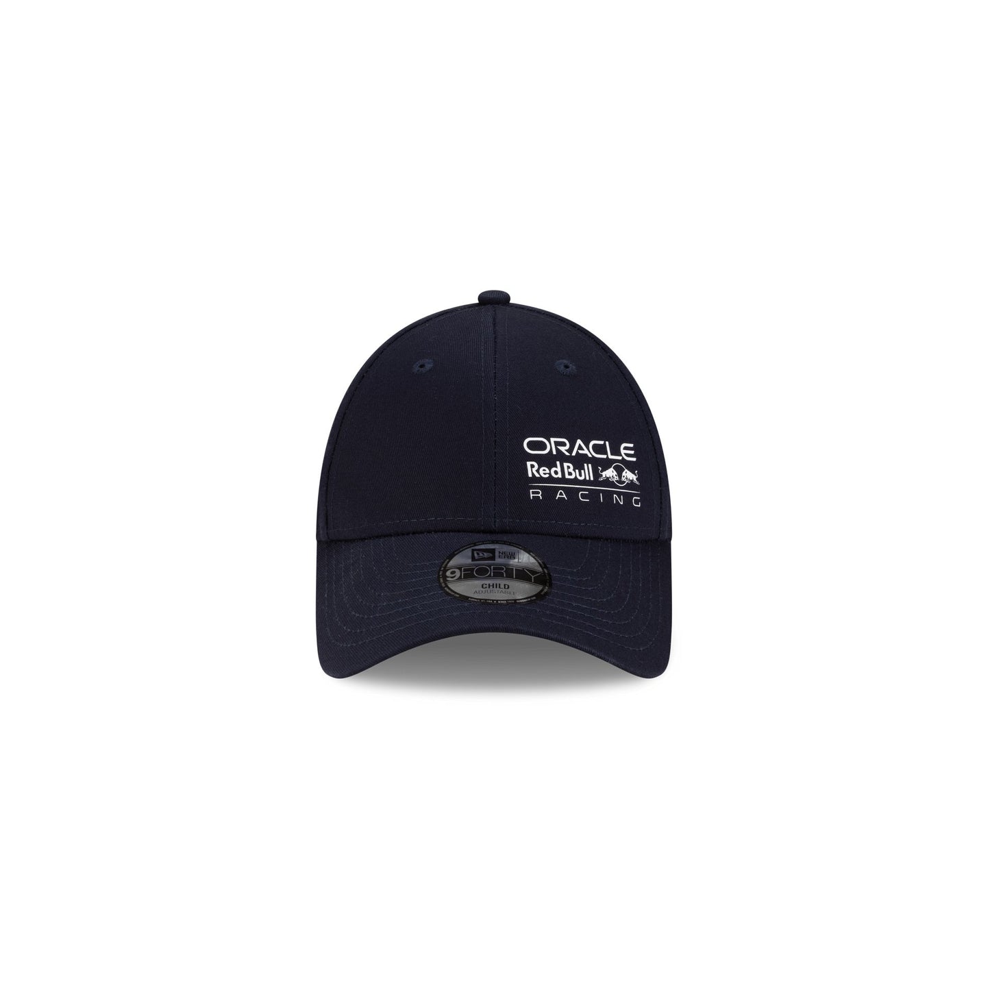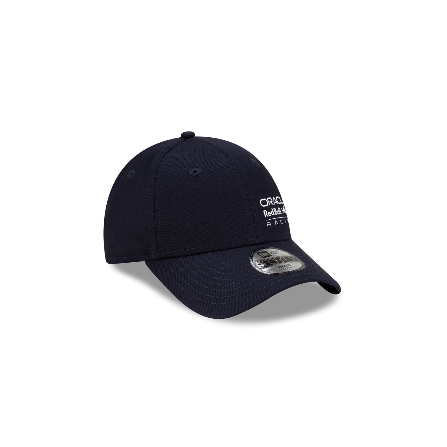 The Oracle Red Bull Racing Kids 9FORTY Snapback features a screen-printed Oracle Red Bull Racing logo at the front panels with an adjustable snapback closure at the rear.