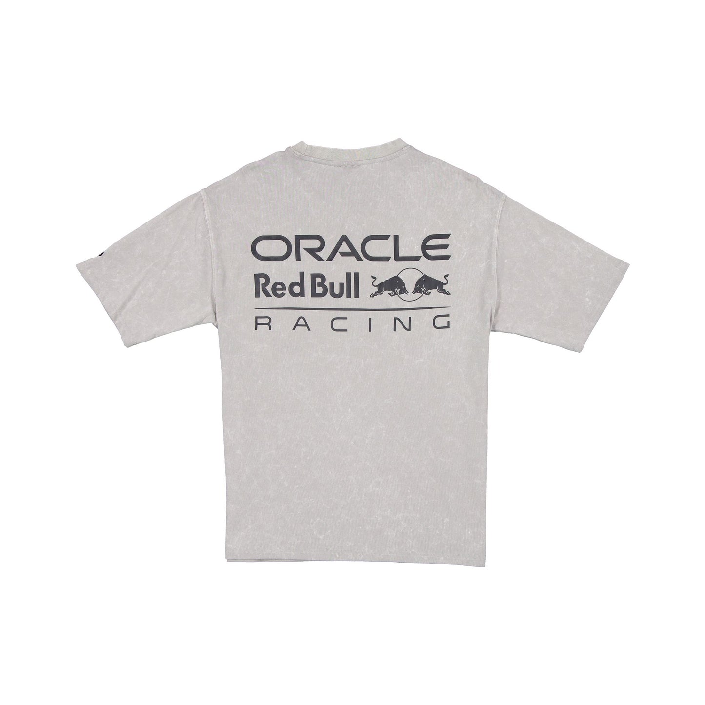 The Oracle Red Bull Racing Linear Graphic Gray T-Shirt features a screen-printed Oracle Red Bull Racing and New Era logo at the left chest with a logo at the rear and a washed fabrication.