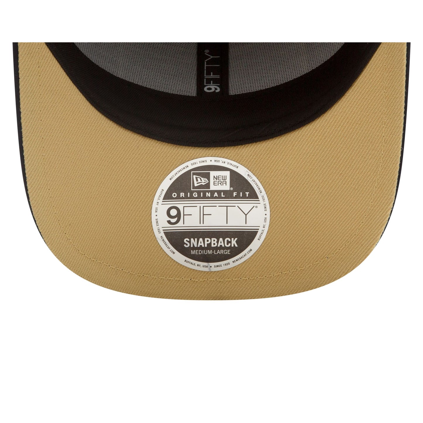 The Oracle Red Bull Racing Max Verstappen Champion 9FIFTY Pre-Curve Snapback features an embroidered Oracle Red Bull Racing patch at the front panels with the driver's number on the visor and a gold undervisor. Additional details include sponsor logos throughout the cap and gold leaf details around a snapback closure at the rear.