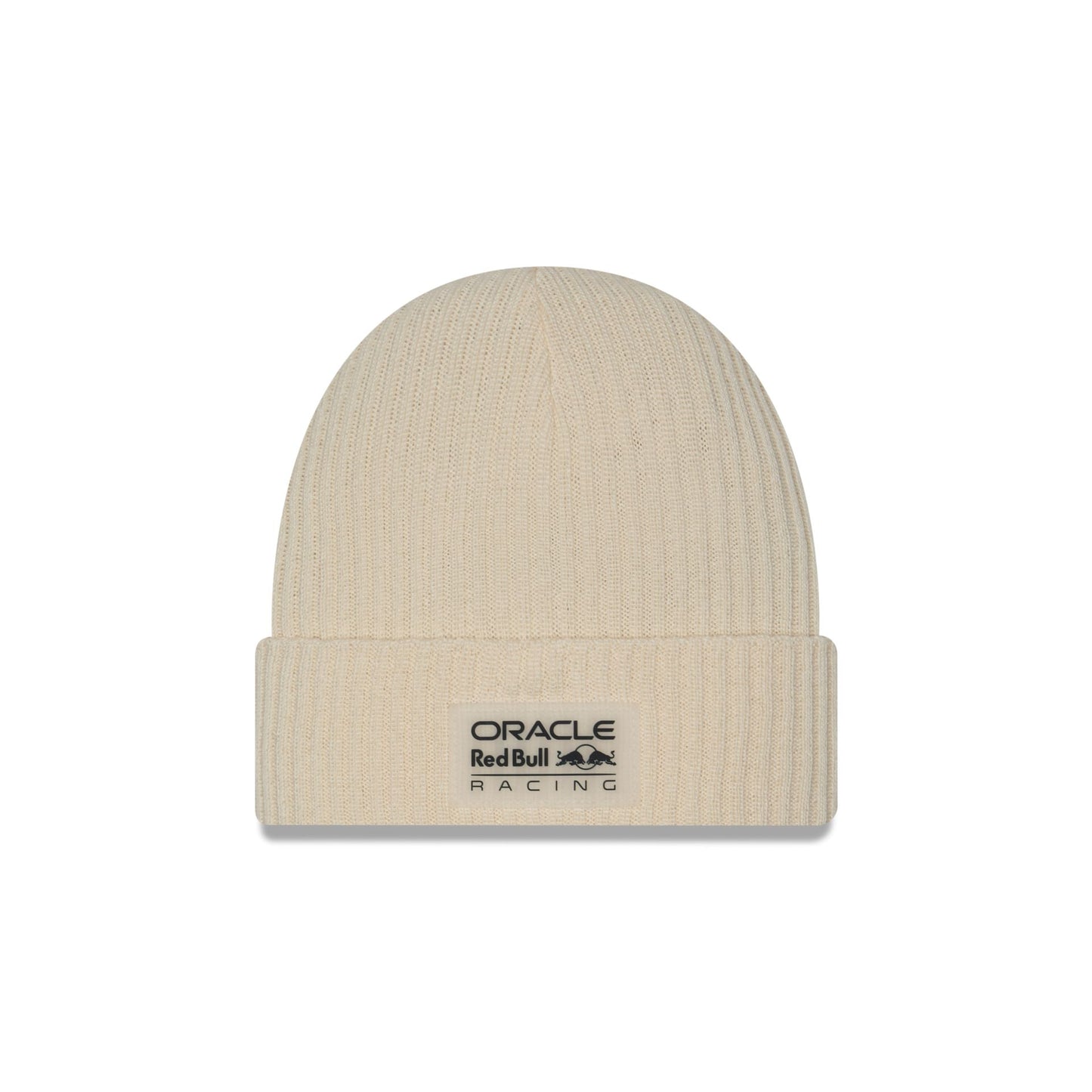 The Oracle Red Bull Racing REPREVE Cuff Knit Beanie features a silicone Oracle Red Bull Racing logo at the front cuff.