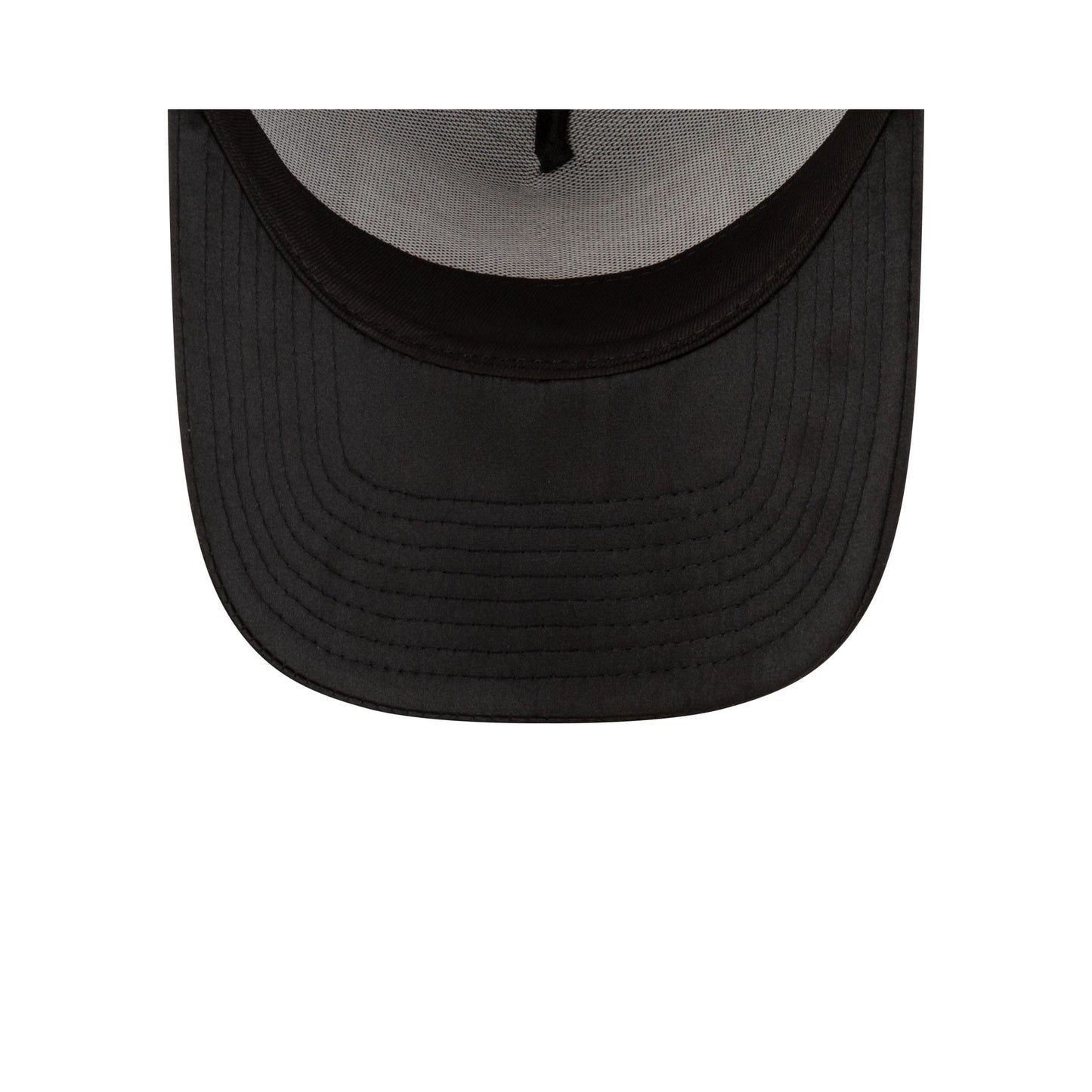 The Oracle Red Bull Racing Satin 9FORTY A-Frame Snapback features an embroidered Oracle Red Bull Racing patch at the front panel with a matching team wordmark above a snapback closure at the rear and a Welcome to Las Vegas patch at the right-wear side.