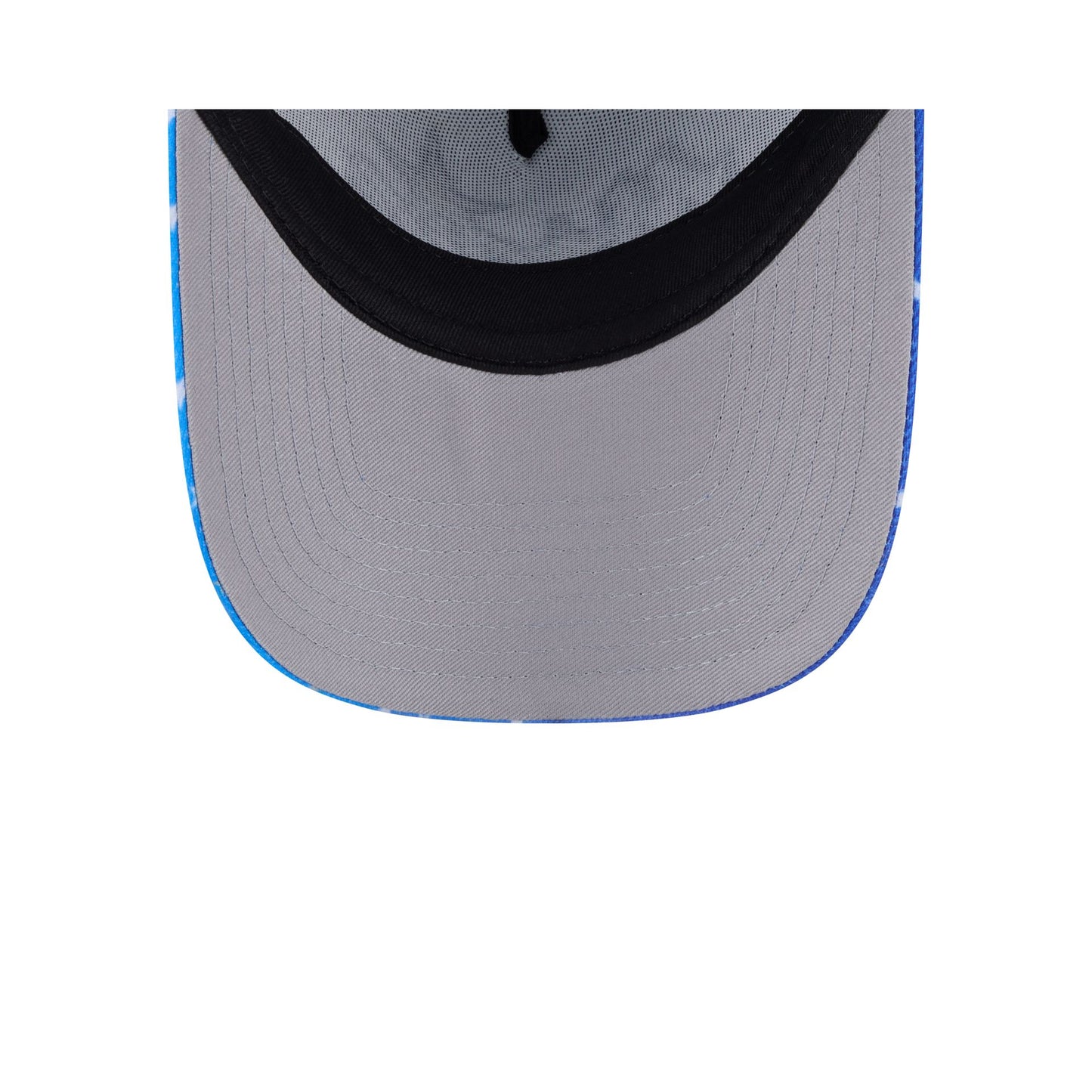 The Orlando Magic 2025 City Edition 9FORTY A-Frame Trucker features an embroidered Magic City Edition logo at the front panels with a logo at the right-wear side. Additional details include the NBA Logoman above an adjustable snapback closure at a mesh rear and a gray undervisor.