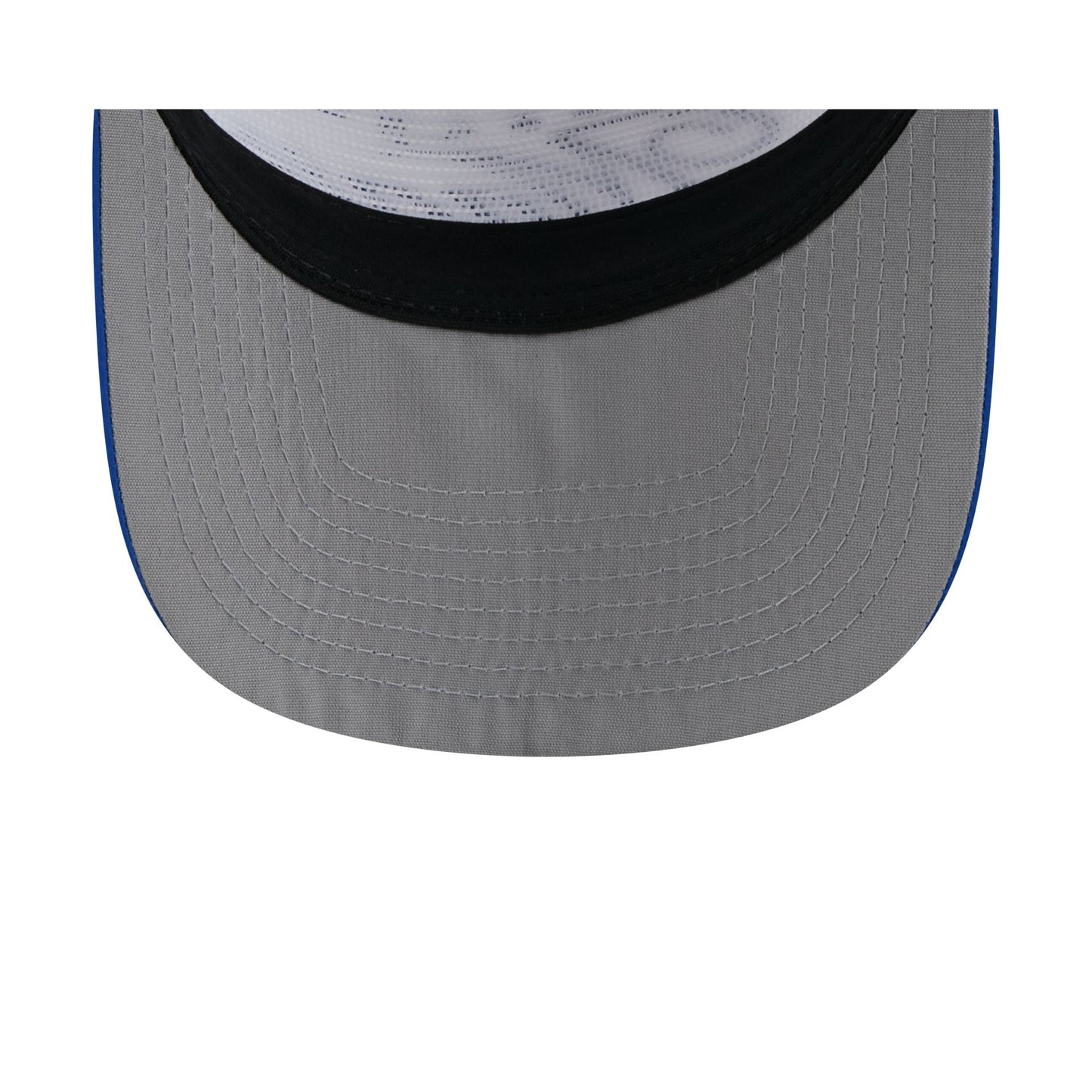 The Orlando Magic 2025 Draft 19TWENTY Adjustable Cap features an embroidered Magic script wordmark at the front panels with a team logo at the right-wear side. Additional details include a woven silicone NBA Logoman patch above an adjustable buckle closure at the rear and a gray undervisor. The strap features a National Basketball Association gel print wordmark.