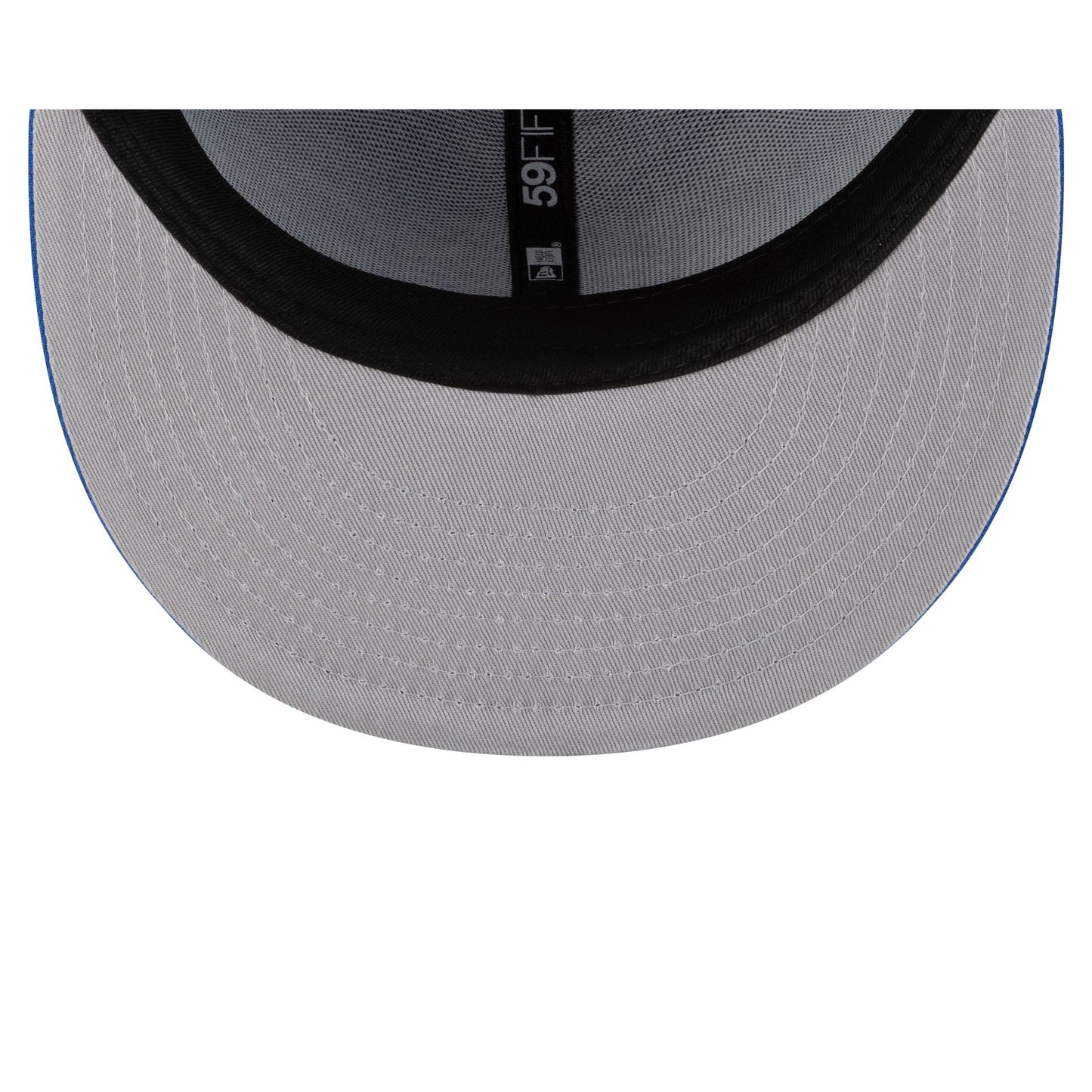 The Orlando Magic 1989-1999 Hardwood Classics Royal Blue 59FIFTY Fitted Cap features an embroidered vintage Magic logo at the front panels with a 1992 All-Star Weekend patch at the right-wear side. Additional details include a Hardwood Classics