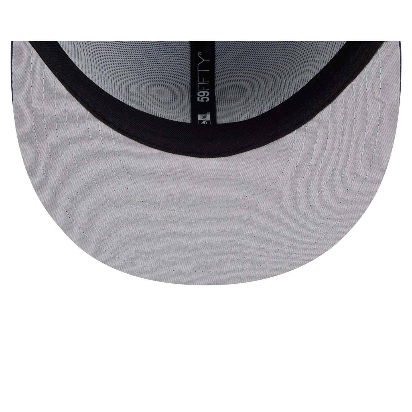 The Palm Beach Cardinals Theme Night Multicolor Blue 59FIFTY Fitted Cap features an embroidered Palm Beach Frozen Iguanas logo at the front panels with the MiLB Batterman logo at the rear and a gray undervisor.