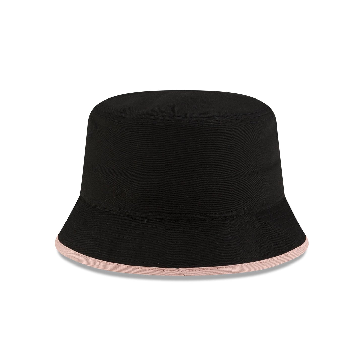 The Paris Saint-Germain Black Bucket Hat features a silicone PSG patch at the front with a rose lined brim.