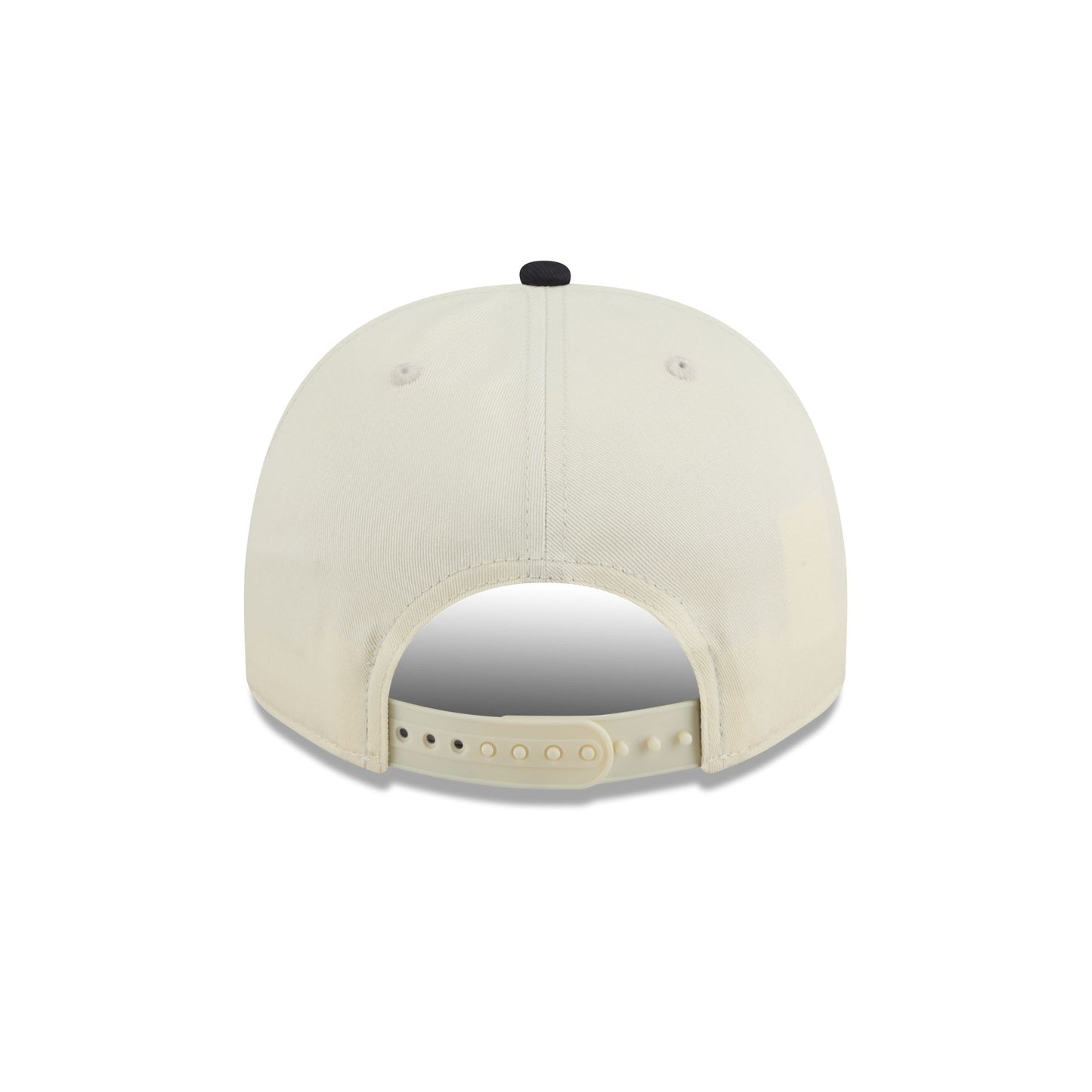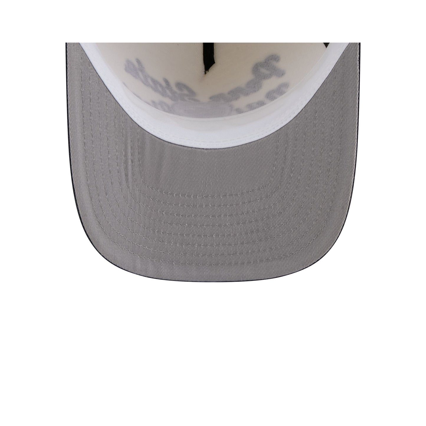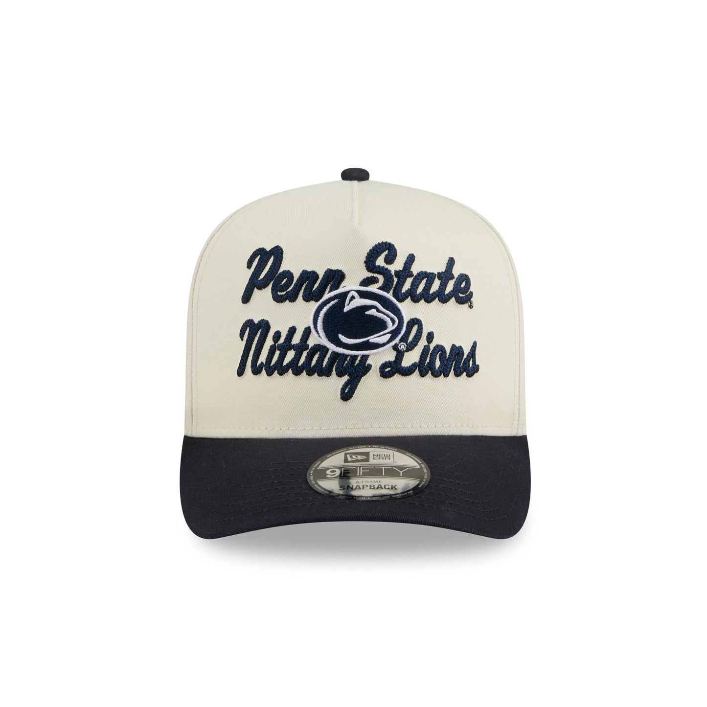 The Penn State Nittany Lions Chainstitch 9FIFTY A-Frame Snapback features a chainstitch Nittany Lions logo and script wordmark at the front panels with a snapback closure at the rear and a gray undervisor.