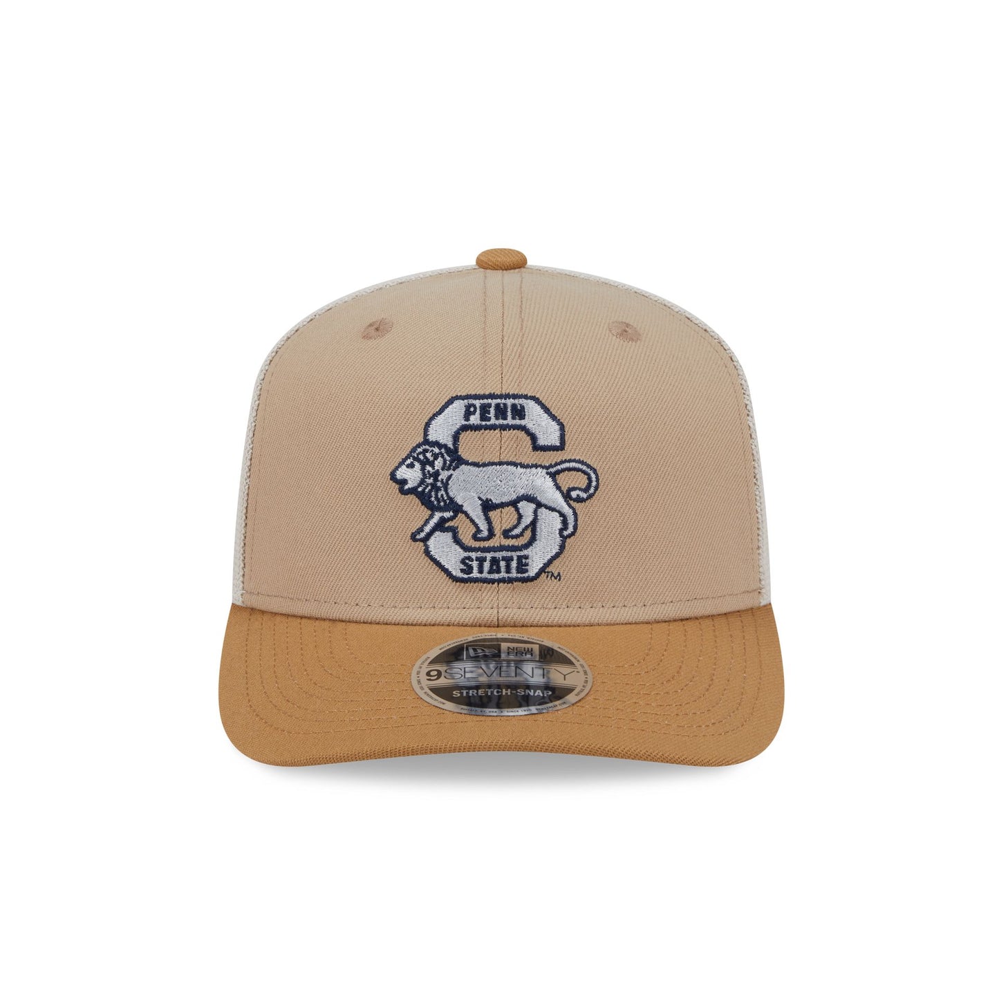 The Penn State Nittany Lions College Vault Stone 9SEVENTY Trucker Nittany Lions College Vault logo at the front panels with an adjustable stretch-snap closure at a mesh rear.