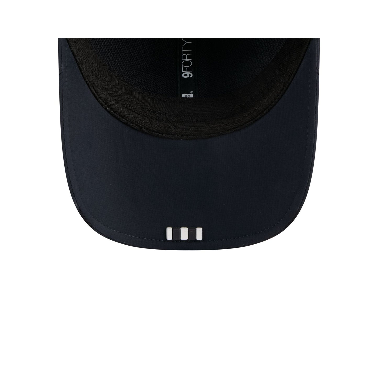 The Penn State Nittany Lions Hot Weather 9FORTY M-Crown Snapback features a sewn-down silicone Nittany Lions logo patch at the front panels with a water-repellent quill tech fabrication throughout and a quick-dry cushioned sweatband to absorb moisture. Additional details include a team wordmark on a soft silicone snapback closure at the rear with team color silicone transfer details at the undervisor.
