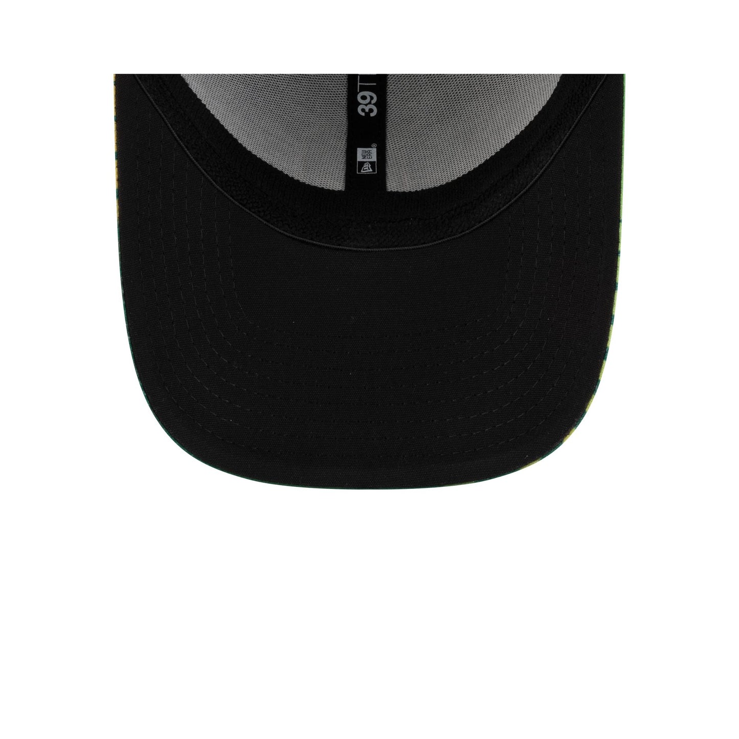 The Pericos de Puebla LMB 100th Anniversary Away 39THIRTY Stretch Fit Cap features an embroidered Pericos alternate logo at the front panels with a LMB 100th Anniversary patch at the rear, a patterned visor, and black undervisor.