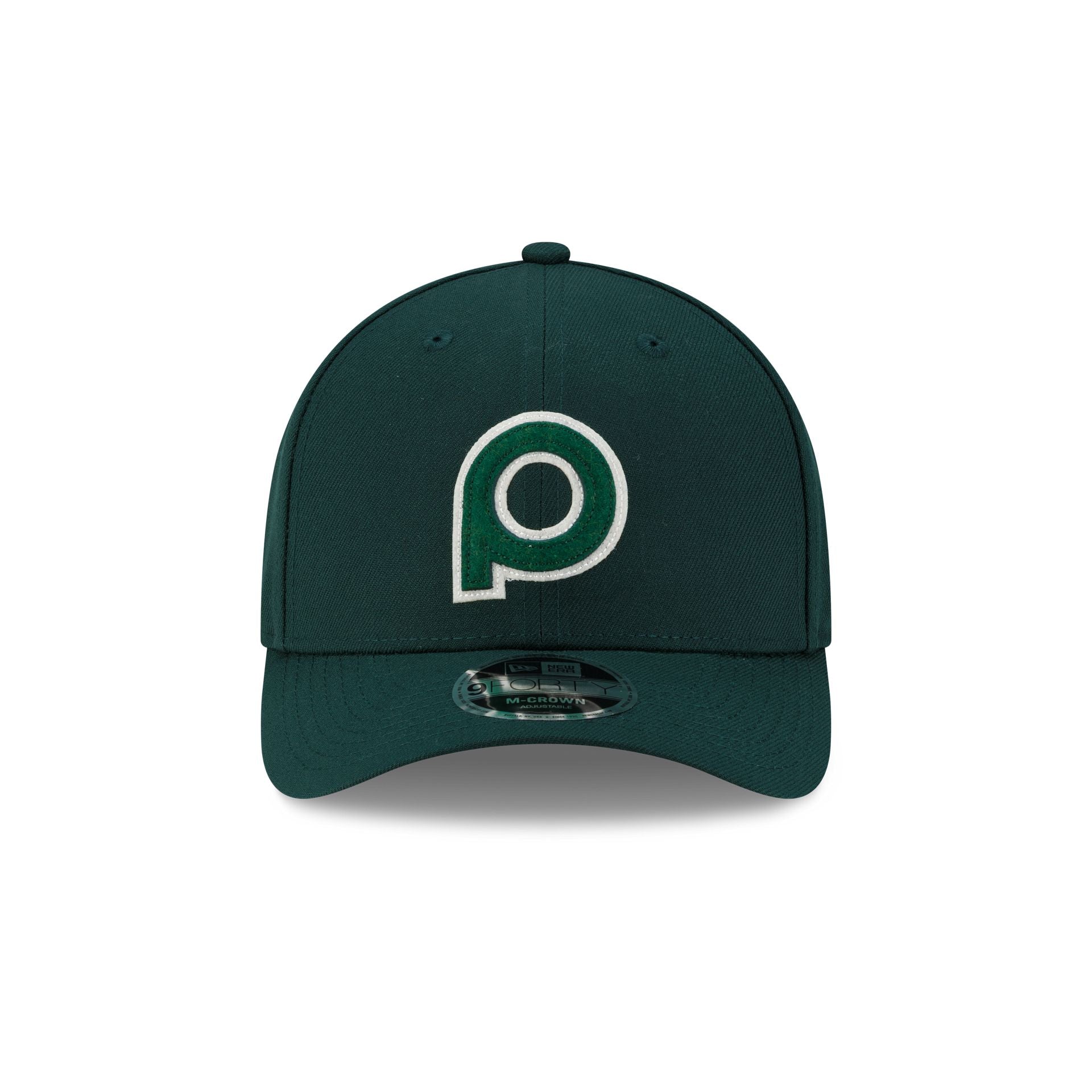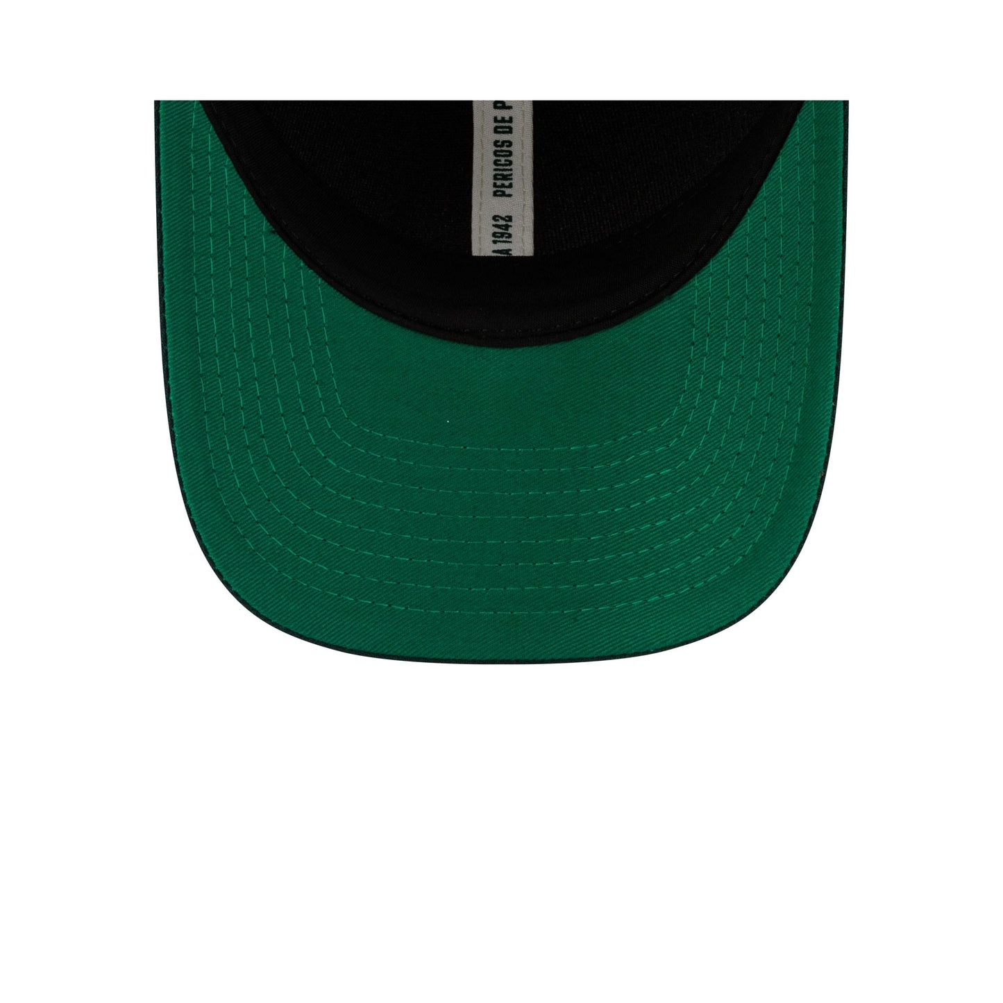 The Pericos de Puebla Retro 9FORTY M-Crown Snapback features an embroidered Pericos retro logo at the front panels with a 100th Anniversary LMB logo above an adjustable snapback closure at the rear.