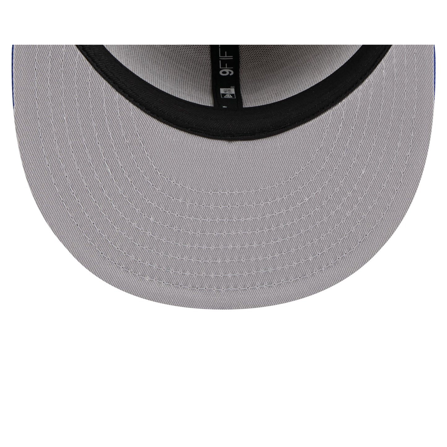 The Philadelphia 76ers 2024 Draft 9FIFTY Snapback features an embroidered 76ers logo and team wordmark at the front panels with the official NBA Logoman above a snapback closure at the rear and a gray undervisor.