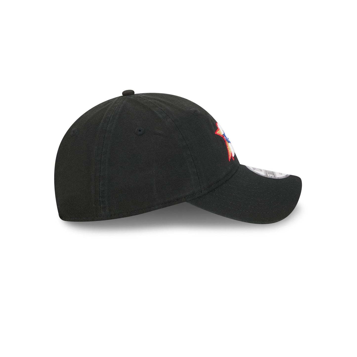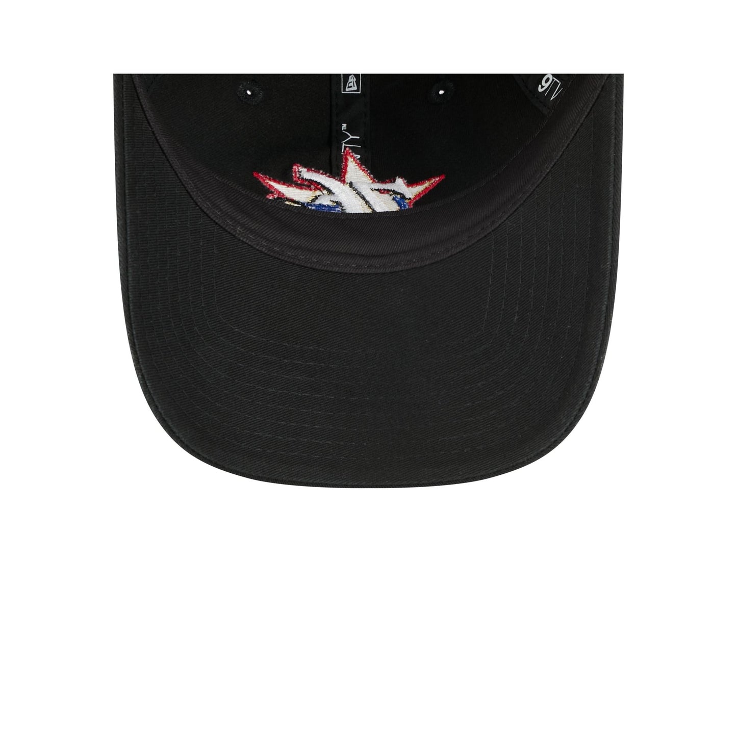 The Philadelphia 76ers 2025 Classic Edition 9TWENTY Adjustable Cap features an embroidered 76ers logo at the front panels with a matching woven team logo tag at an adjustable D-Ring closure at the rear.