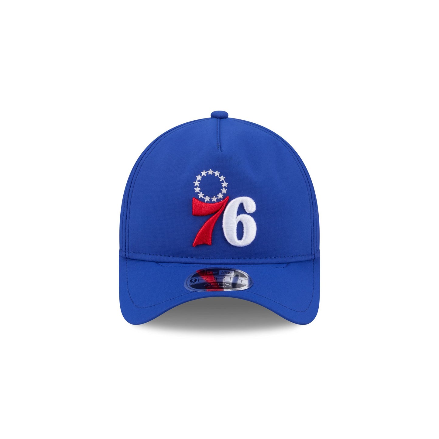 The Philadelphia 76ers 9FORTY APEX Snapback features an embroidered 76ers logo at the front panel with an adjustable snapback closure at the rear and a black undervisor.