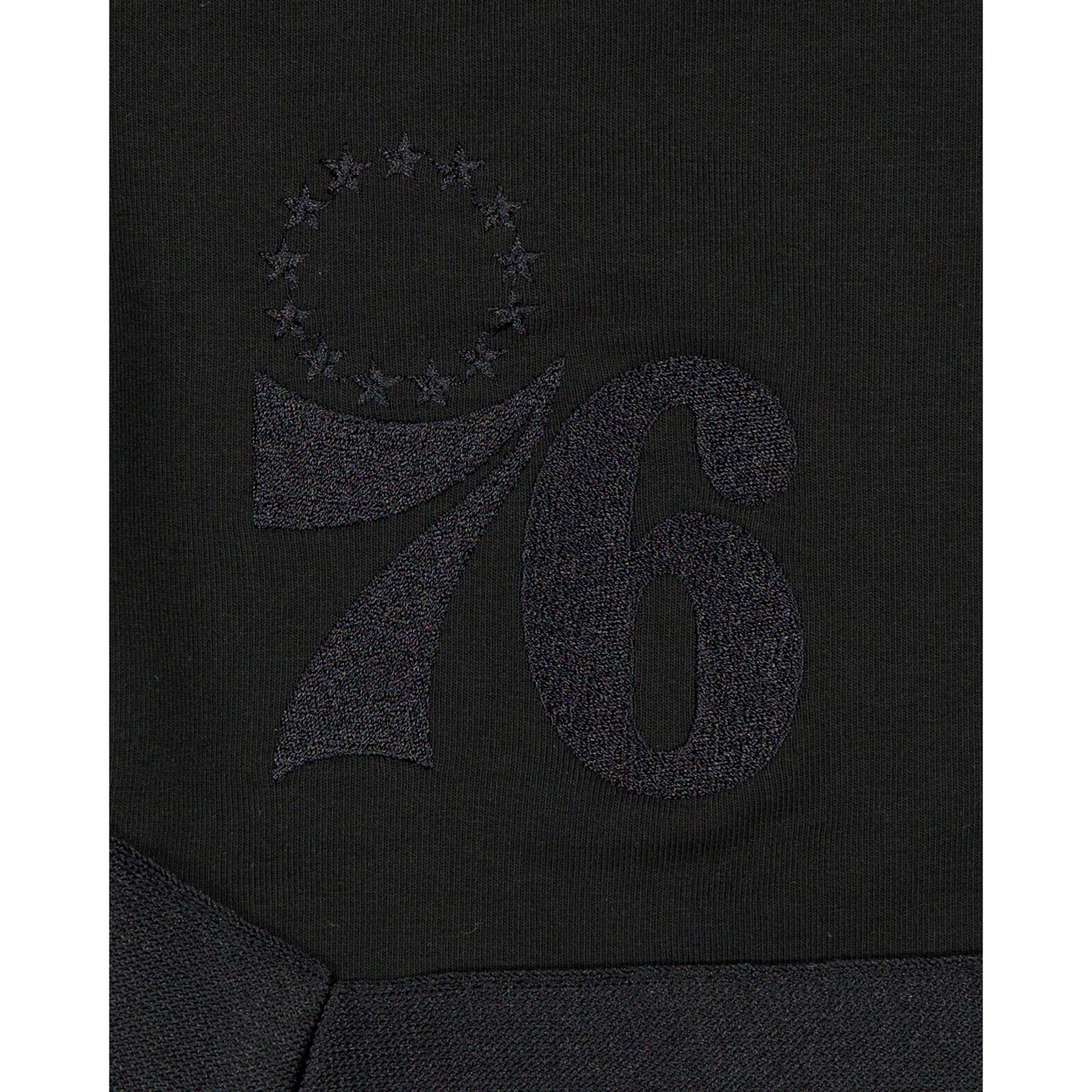 The Philadelphia 76ers Black on Black Logo Select Shorts features an embroidered 76ers logo at the right-wear leg and a satin applique with a tonal stitch team wordmark at the rear left leg.