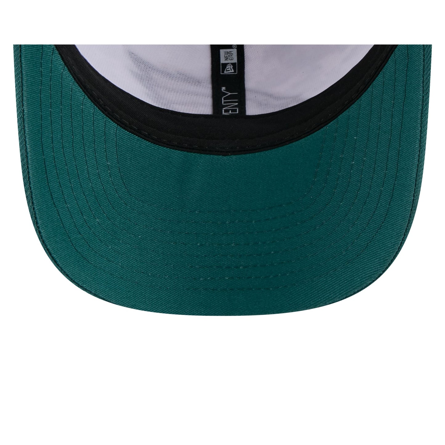 The Philadelphia Eagles 2025 Salute to Service Fan Gear 9SEVENTY Stretch-Snap Cap features an embroidered Eagles logo at the front panels with the official NFL Salute to Service patch above a snapback closure at the rear, an American flag patch at the right-wear side, and a team color visor.
