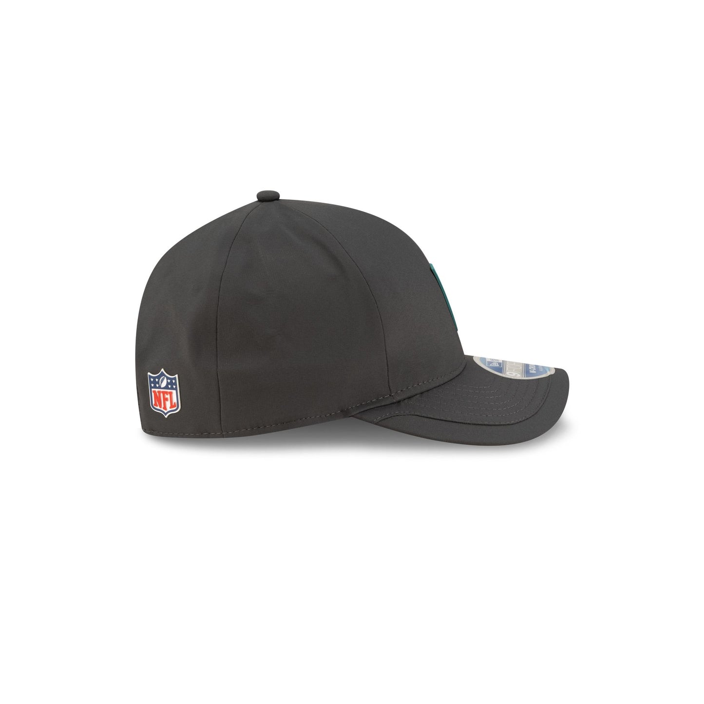 The Philadelphia Eagles Sideline Cold Weather Steel Clouds Kids 9FORTY M-Crown Snapback features a sewn-down silicone Eagles logo patch at the front panels with a water-repellent quill tech fabrication throughout and a quick-dry cushioned sweatband to absorb moisture. Additional details include the Official NFL Shield logo to the right of a soft silicone snapback closure at the rear. The crown has bonded seams to trap warmth and the undervisor is accented with a silicone transfer in the team’s colors.