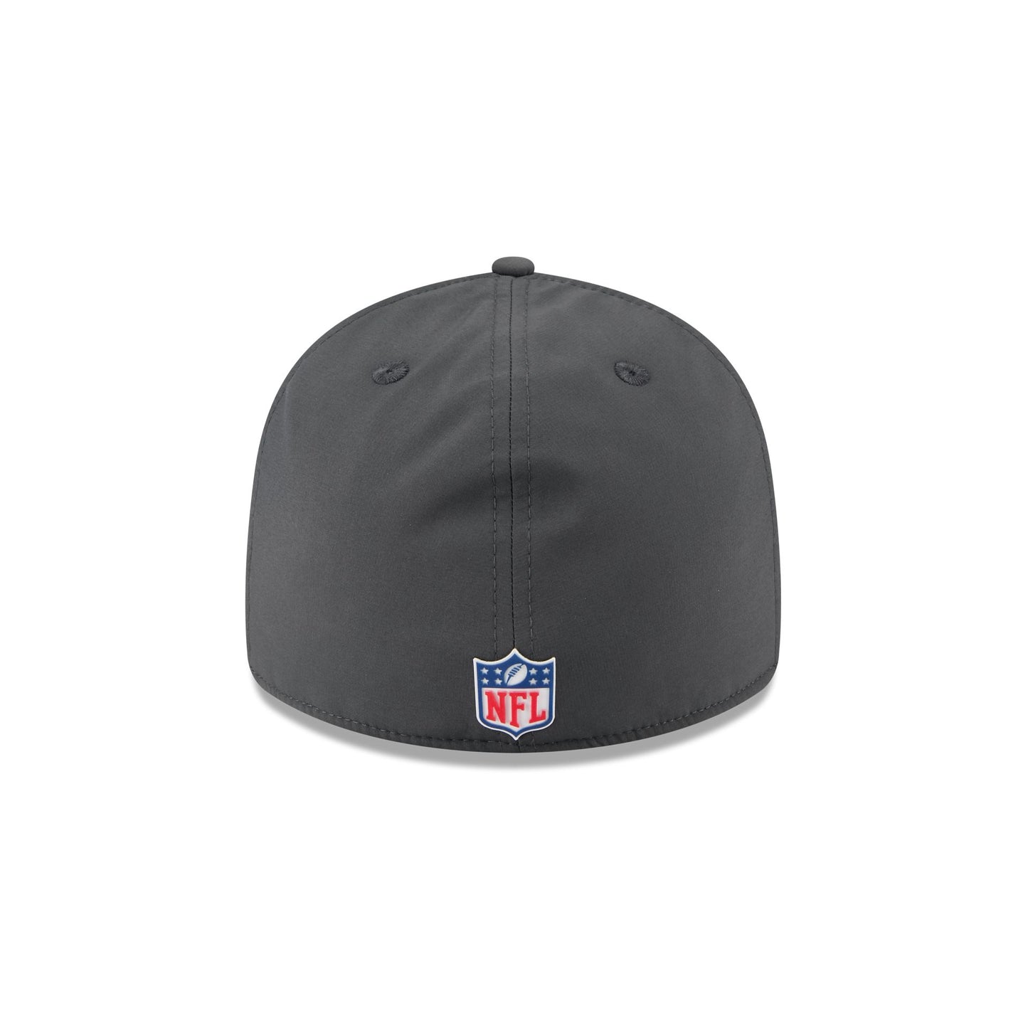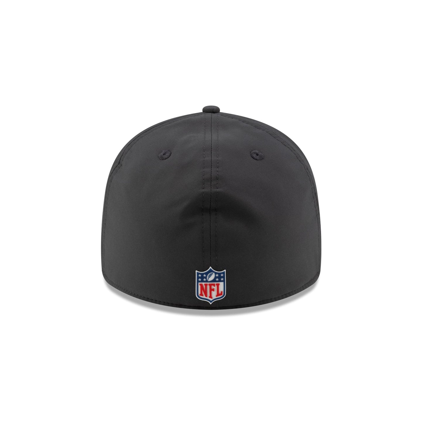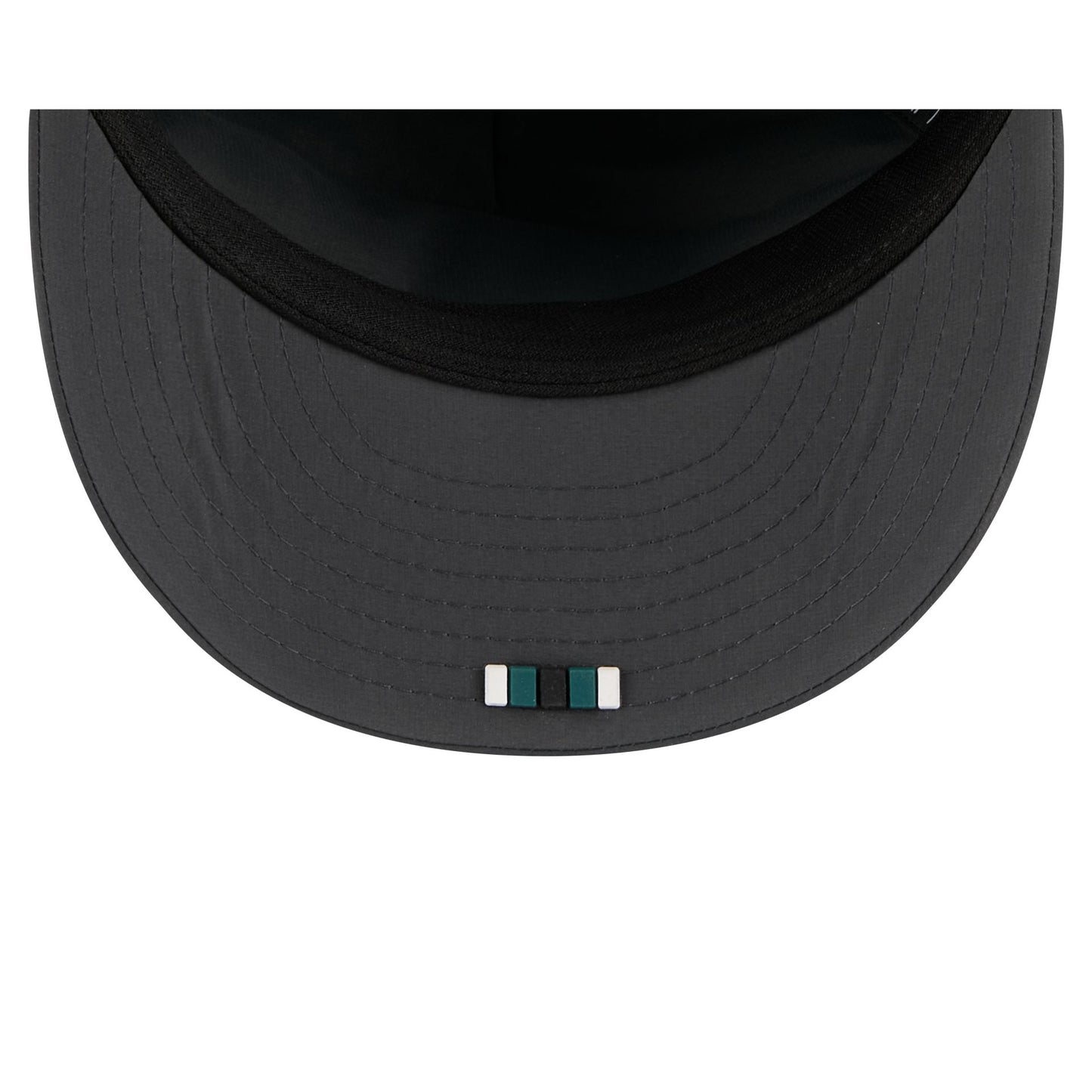 The Philadelphia Eagles 2025 Sideline Cold Weather Steel Clouds Retro Crown 59FIFTY A-Frame Fitted Cap features a sewn-down silicone Eagles logo patch at the front panels with the Official NFL Shield logo at the rear. The cap has a water-repellent quill tech fabrication throughout, with an insulated crown and quick-dry cushioned sweatband. The undervisor is accented with a silicone transfer in the team’s colors.