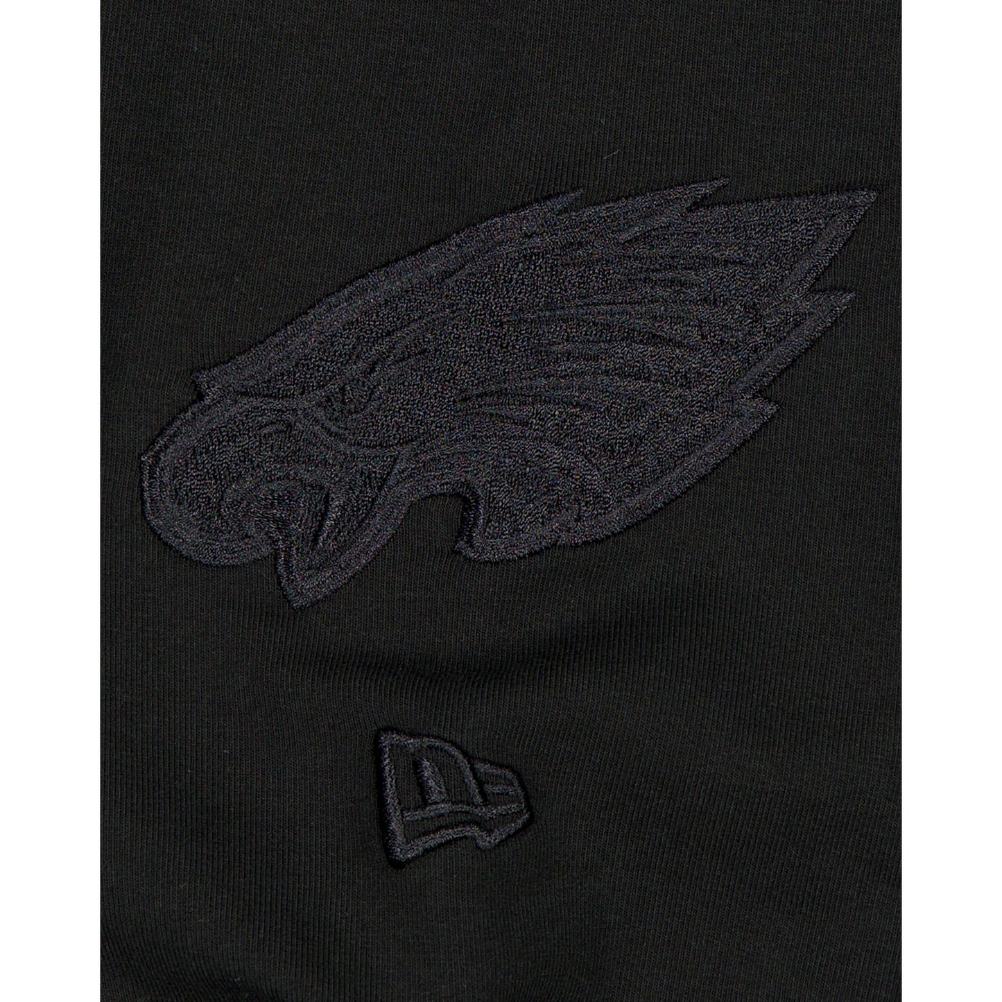 The Philadelphia Eagles Black on Black Logo Select Hoodie features a satin applique with a tonal stitch Eagles wordmark at the chest and an embroidered team logo at the left-wear sleeve.