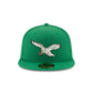 The Philadelphia Eagles Classic Logo 59FIFTY Fitted features an embroidered historical Eagles logo at the front panels and an embroidered team script at the rear.