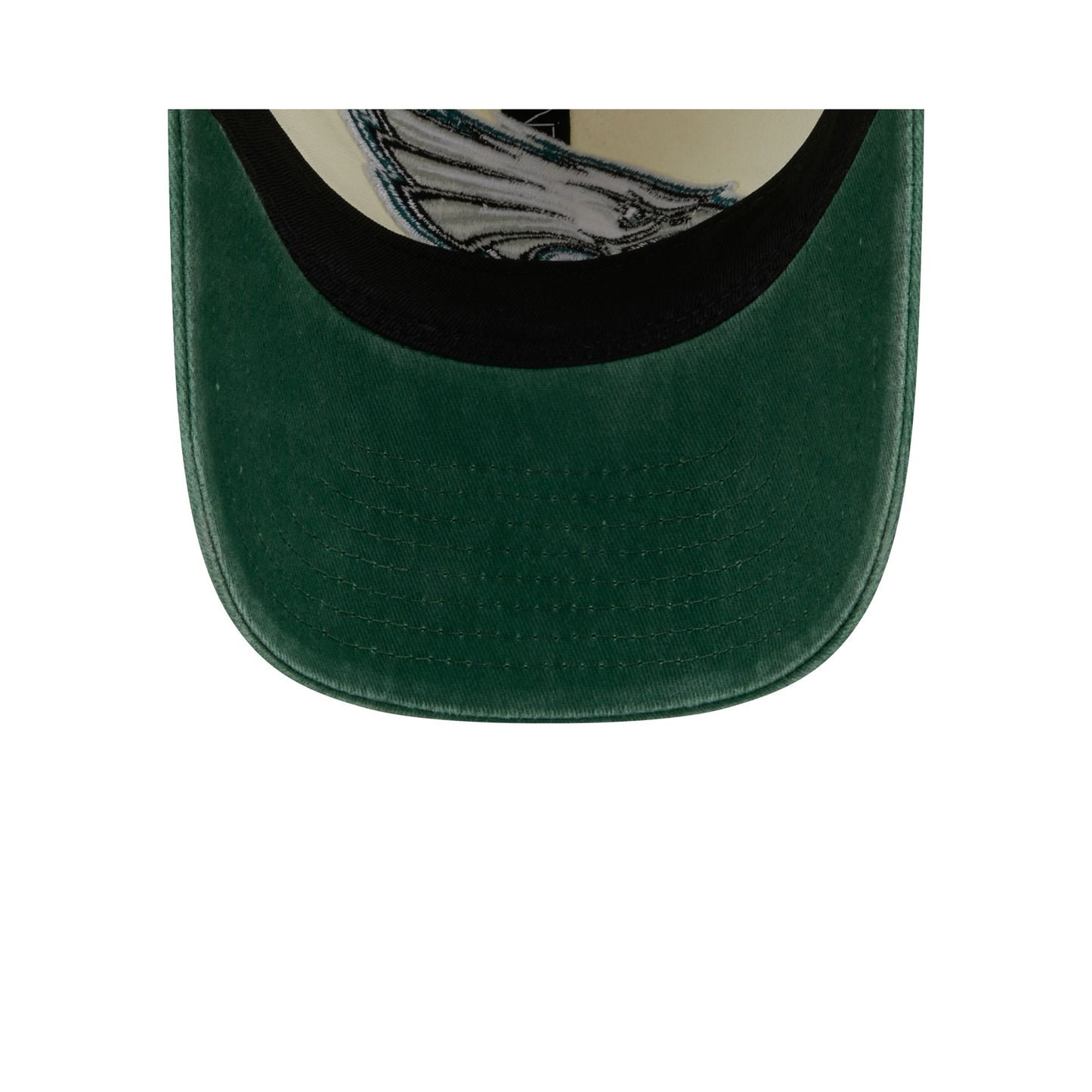 The Philadelphia Eagles Classic Sidescript 9TWENTY Adjustable Cap features an embroidered Eagles logo at the front panels with a matching team wordmark at the right-wear side. Additional details include eyelets throughout the cap and an adjustable D-Ring closure at the rear.