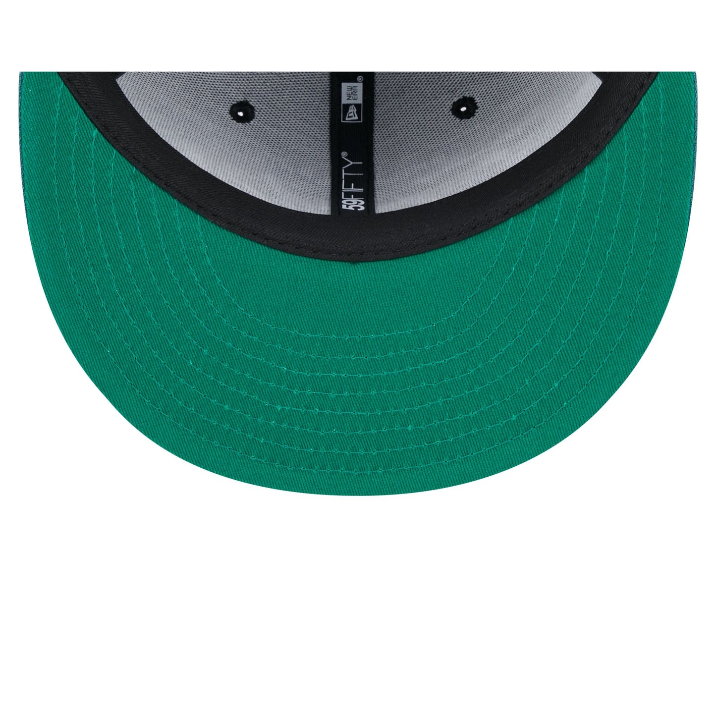 The Philadelphia Eagles Faux Leather Crown 59FIFTY Fitted Cap features an embroidered Eagles wordmark at the front panels with a matching NFL Shield at the rear, a green visor, and green undervisor.