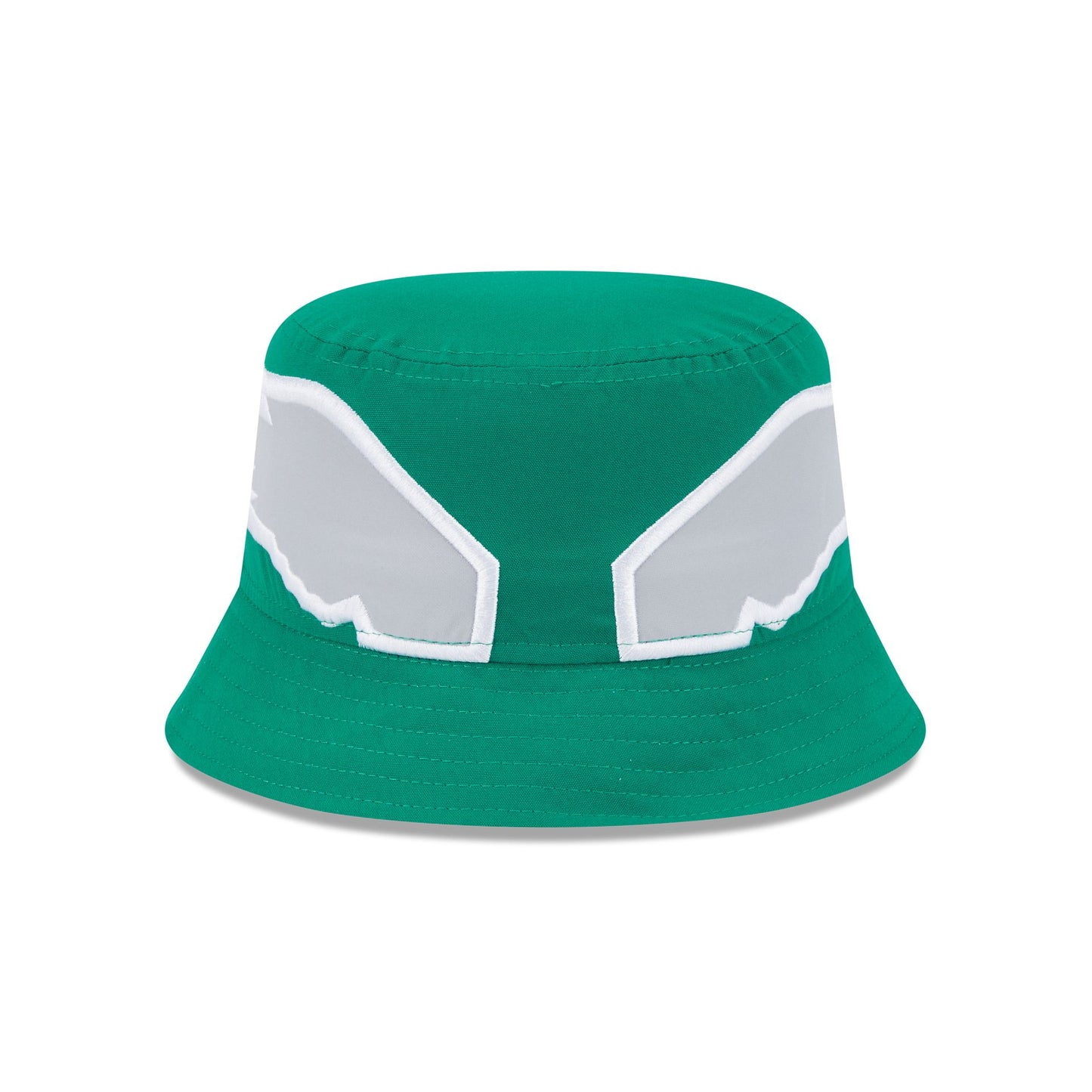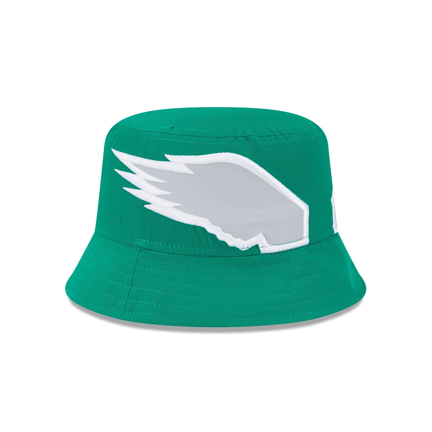 The Philadelphia Eagles Historic Helmet Bucket Hat features an embroidered Eagles helmet design throughout.