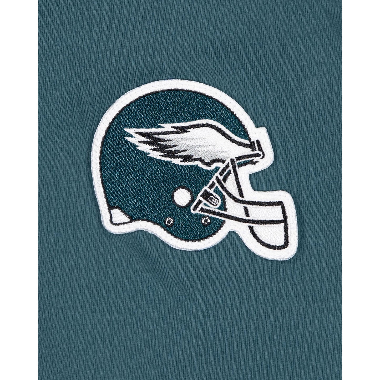 The Philadelphia Eagles Logo Select Hoodie features a chenille applique Eagles logo at the left chest with team patches at each sleeve and an embroidered team wordmark at the rear.