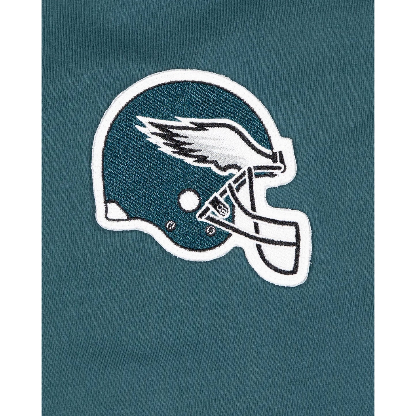 The Philadelphia Eagles Logo Select T-Shirt features a chenille applique Eagles logo at the left chest with team patches at each sleeve and an embroidered team wordmark at the rear.