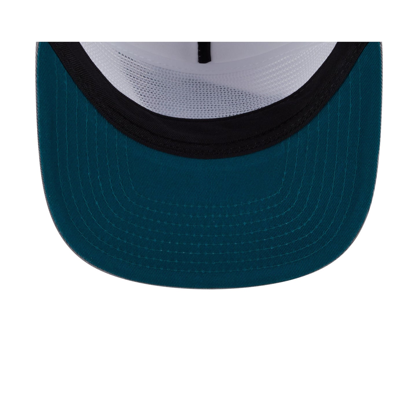 The Philadelphia Eagles Optic White Golfer features an embroidered Eagles logo at the front panels with a matching team wordmark at the right-wear side. Additional details include a snapback closure at the rear and a teal undervisor.