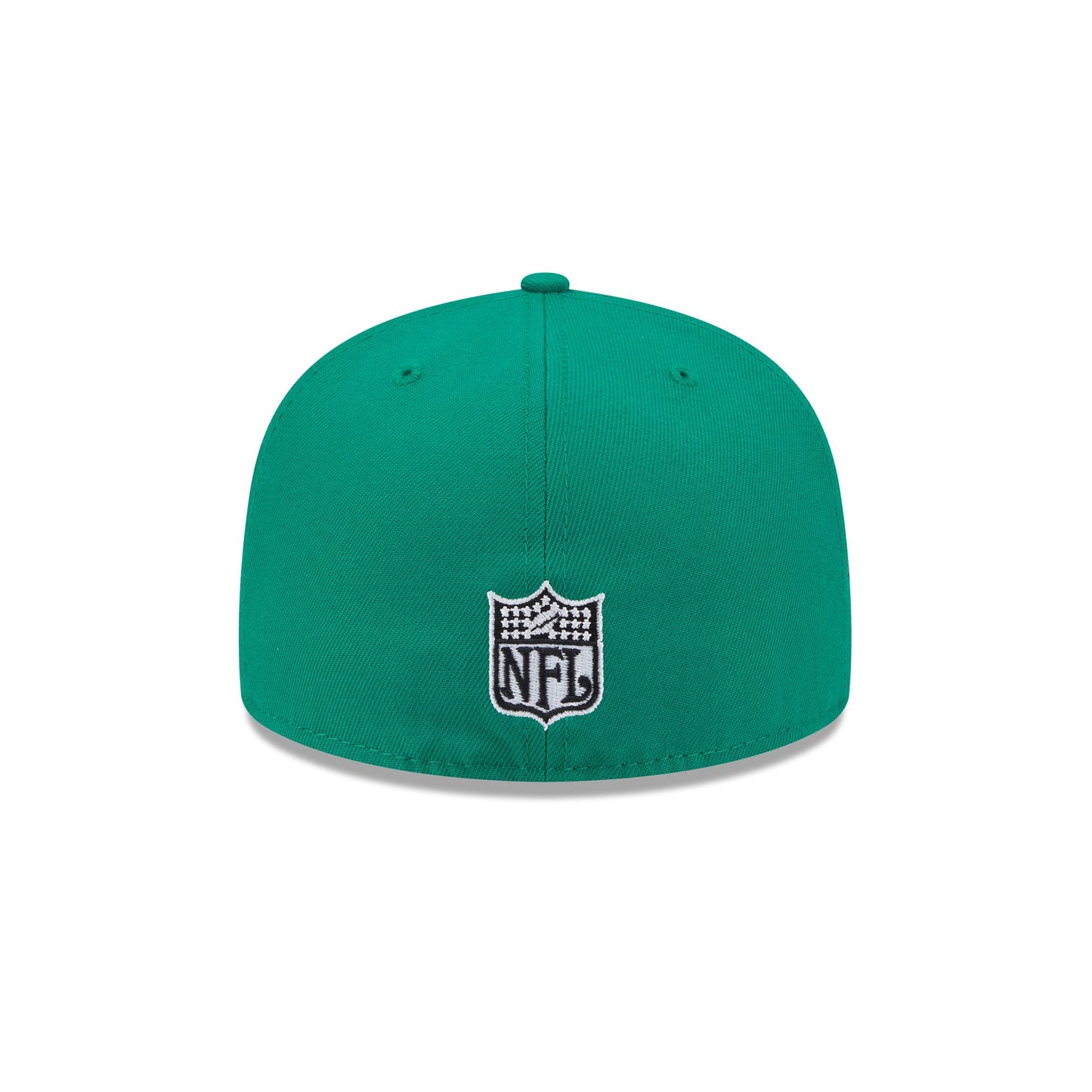 The Philadelphia Eagles Oversized 59FIFTY Fitted Cap features an embroidered Eagles Historic oversized graphic at the front panels and visor. Additional details include a logo at the right-wear side, an NFL Shield logo at the rear, and a gray undervisor.