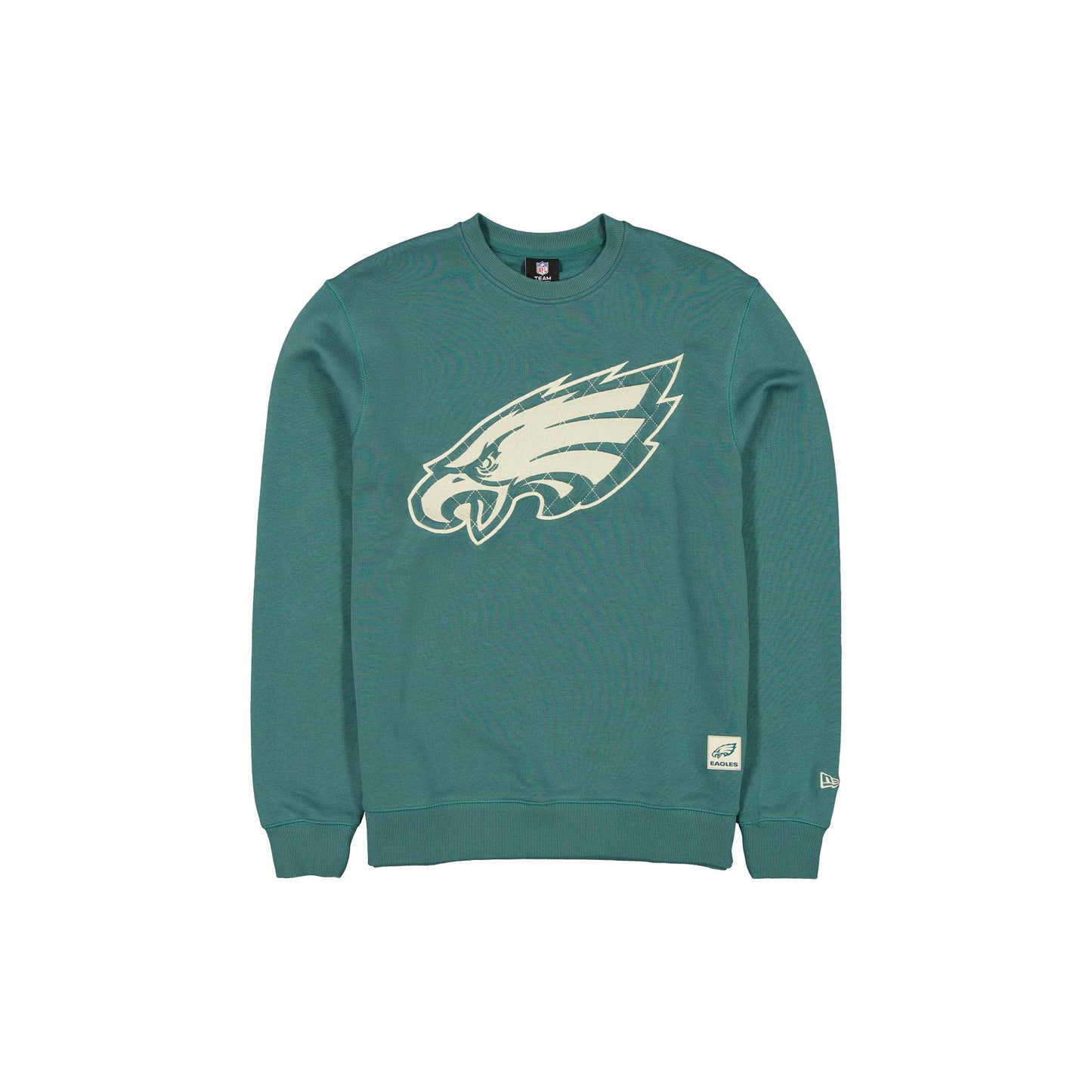 The Philadelphia Eagles Quilted Crewneck features a diamond quilt embroidered Eagles logo at the chest with a matching team jock tag at the hem.
