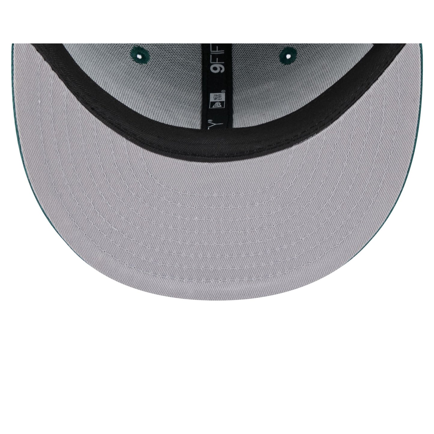 The Philadelphia Eagles Kids 9FIFTY Snapback Hat features an embroidered Eagles wordmark at the front panels with a matching team logo at the right-wear side. Additional details include a gray undervisor and a snapback closure at the rear.