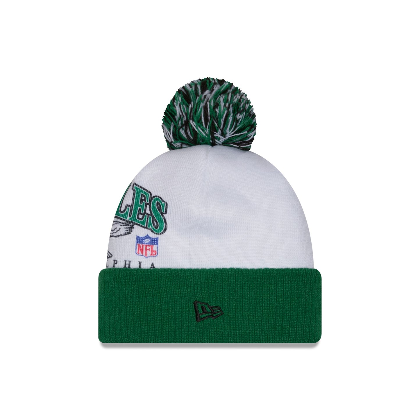 The Philadelphia Eagles Spirit Pom Knit features a screen-printed Eagles Historic graphic at the crown with a one-time removable pom.