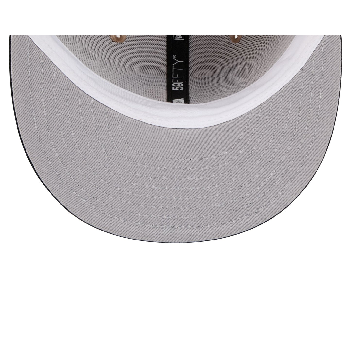 The Philadelphia Flyers Camel 59FIFTY Fitted Cap features an embroidered Flyers logo at the front panels with a matching NHL Shield at the rear, a team color visor, and a gray undervisor.