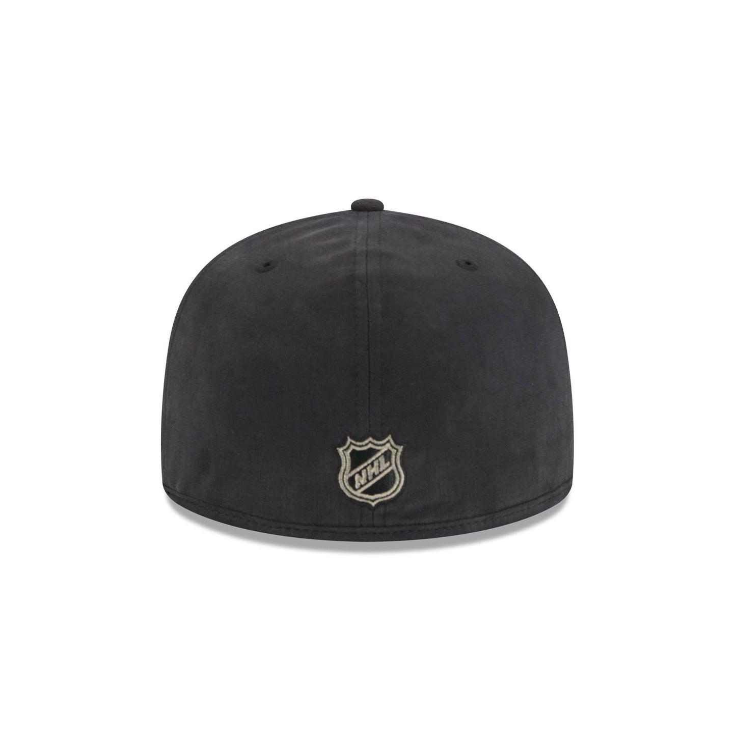 The Philadelphia Flyers Quilted 59FIFTY A-Frame Fitted Cap features an embroidered Flyers logo at the front panel with a matching NHL Shield at the rear, a brushed cotton fabrication, and a green undervisor.