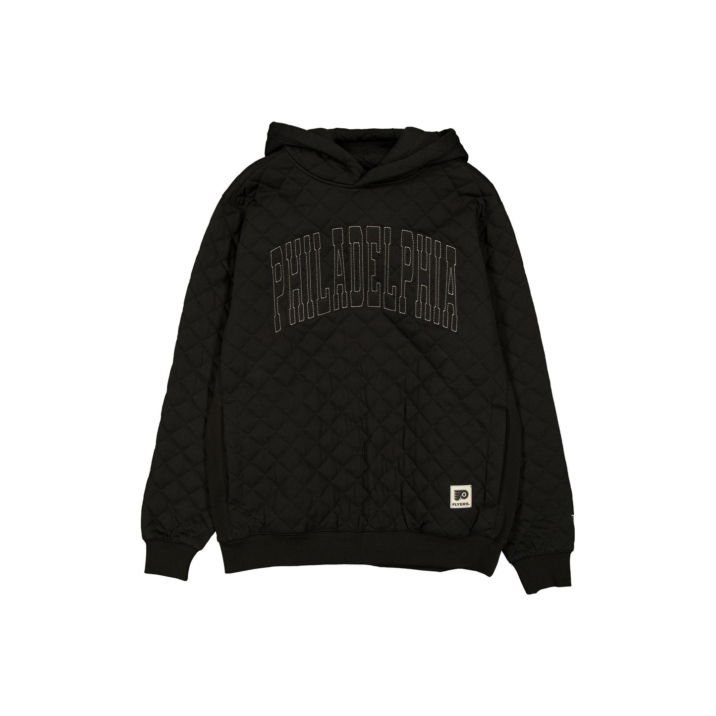 The Philadelphia Flyers Quilted Hoodie features a running stitched jersey applique Flyers wordmark at the chest with a matching team jock tag at the hem and slit pockets at the sides.
