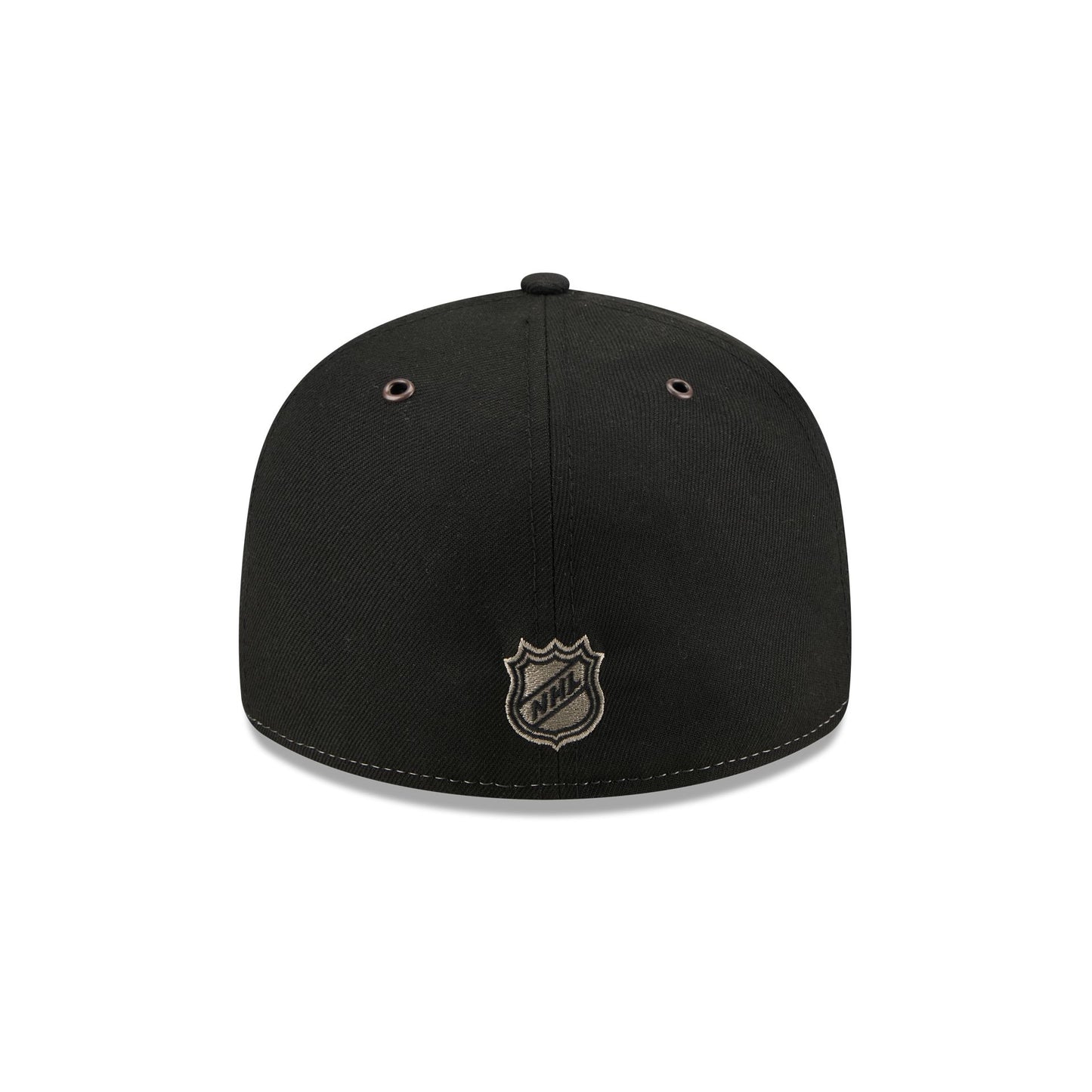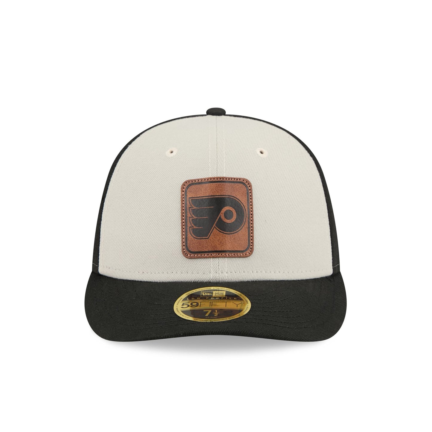 The Philadelphia Flyers Quilted Low Profile 59FIFTY Fitted Cap features a faux leather debossed applique Flyers patch at the front panels with a matching 50th Anniversary team patch at the right-wear side and an embroidered NHL Shield at the rear.