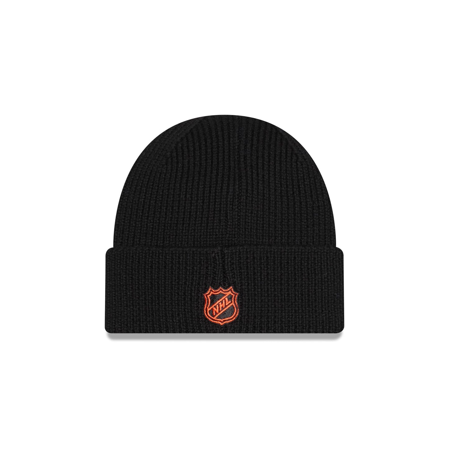 The Philadelphia Flyers Short Skull Cuff Knit Beanie features an embroidered Flyers logo at the front cuff with the NHL Shield logo at the rear.