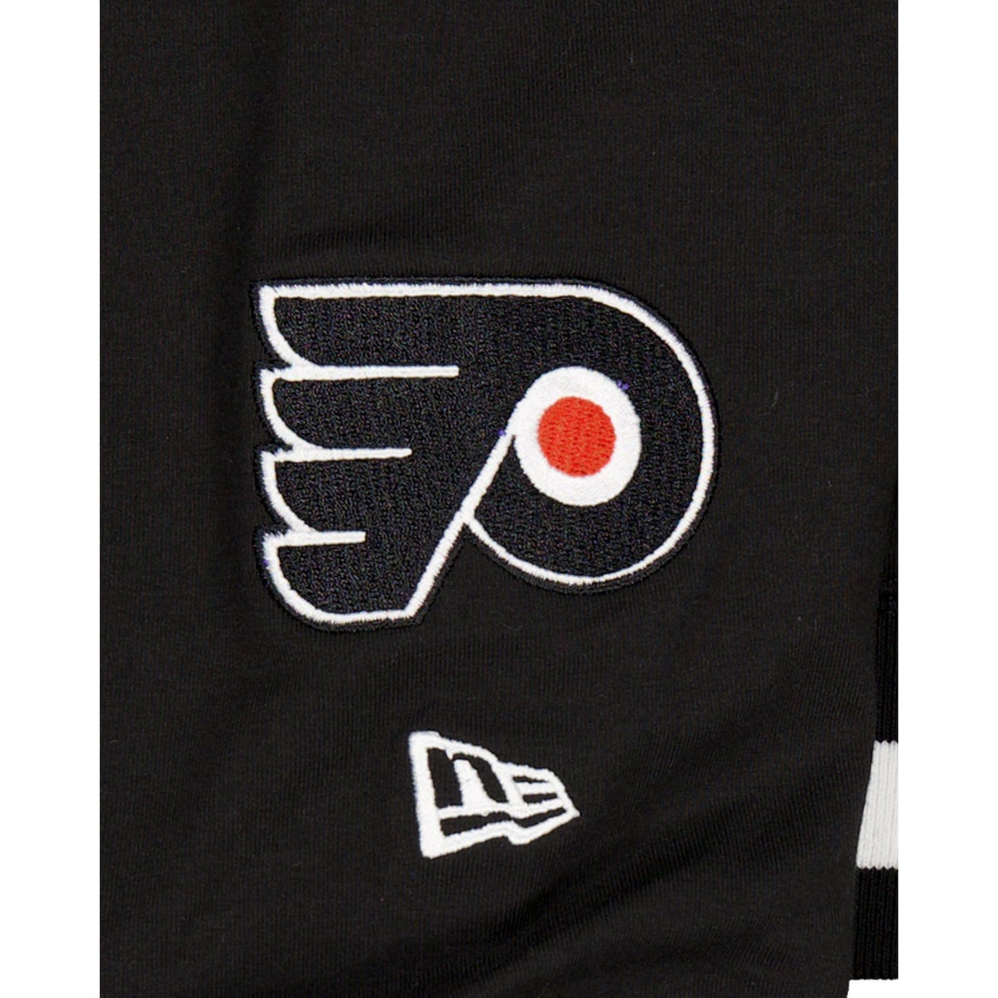 The Philadelphia Flyers Team Color Logo Select Hoodie features a zig zag stitched twill applique Flyers wordmark at the chest with a New Era Cap jock tag at the kangaroo pocket and an embroidered team logo at the left sleeve.