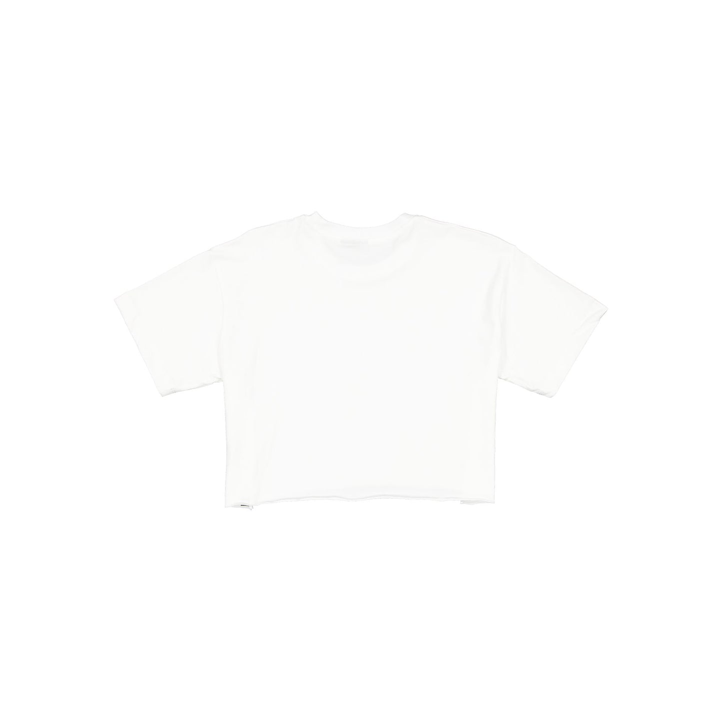 The Philadelphia Flyers Throwback Prep Women's Cropped T-Shirt features a screen-printed Flyers wordmark above a team emblem at the front.