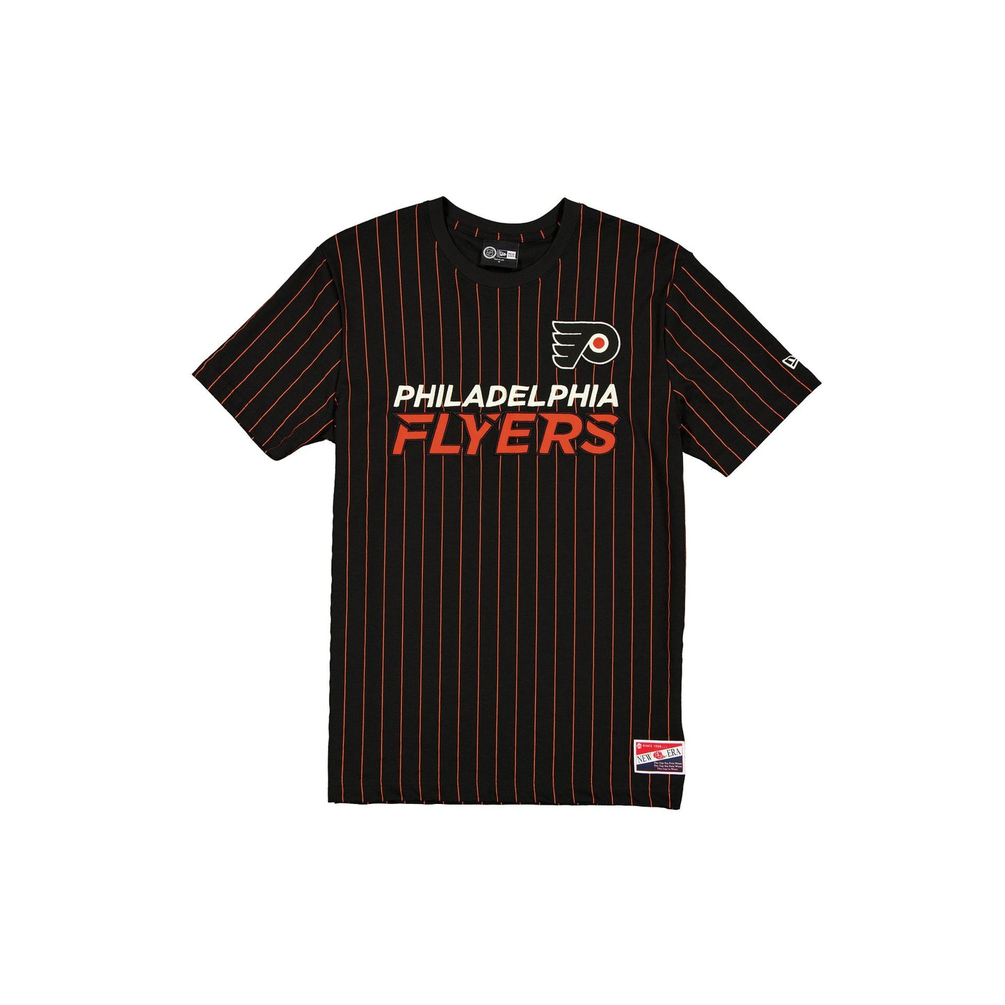 The Philadelphia Flyers Throwback Retro Pinstripe T-Shirt features an embroidered Flyers wordmark at the front with a twill applique logo at the left chest.