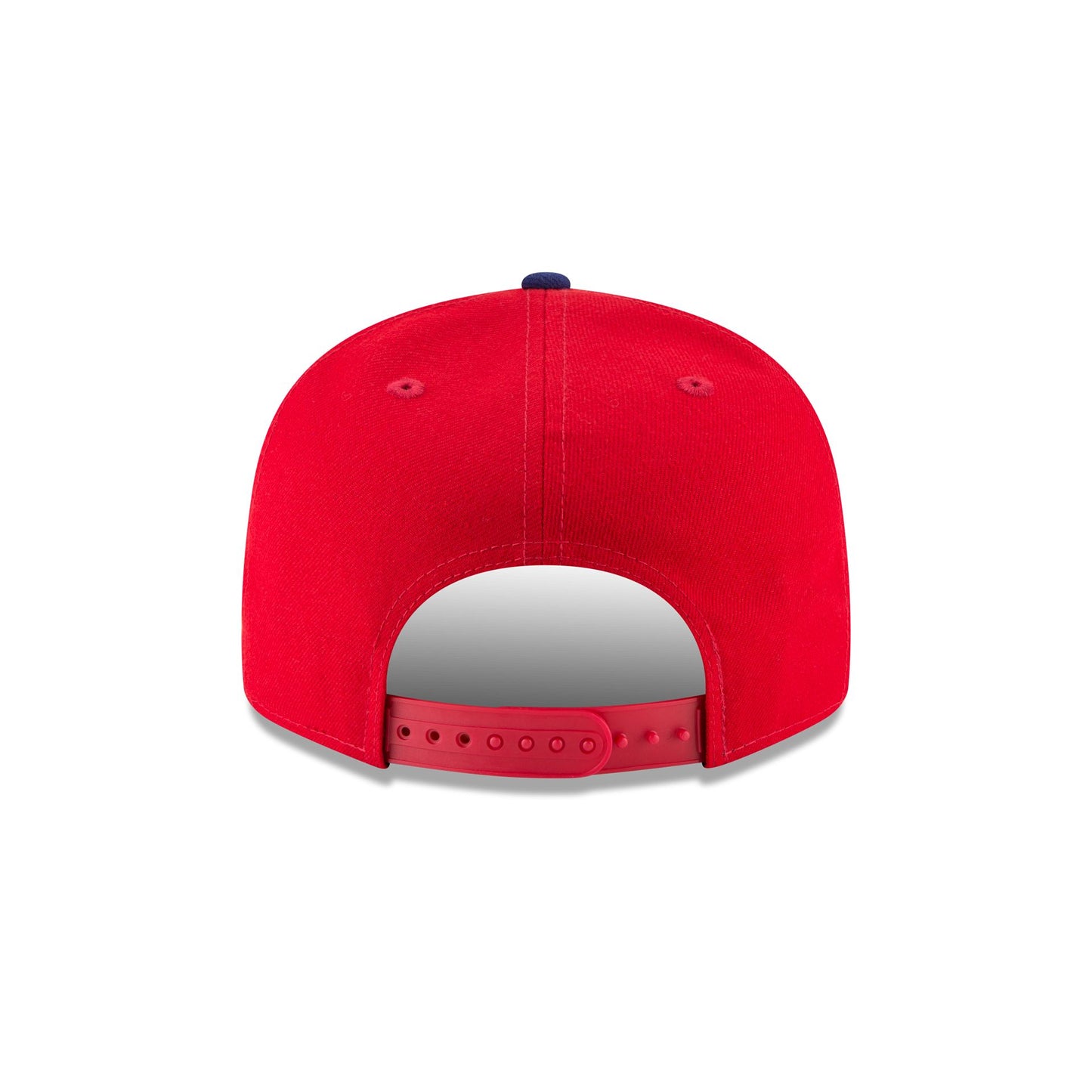 The Philadelphia Phillies 2026 All-Star Game Host 9FIFTY Snapback features an embroidered Phillies logo at the front panels with a 2026 All-Star Game patch at the right-wear side and an adjustable snapback closure at the rear.