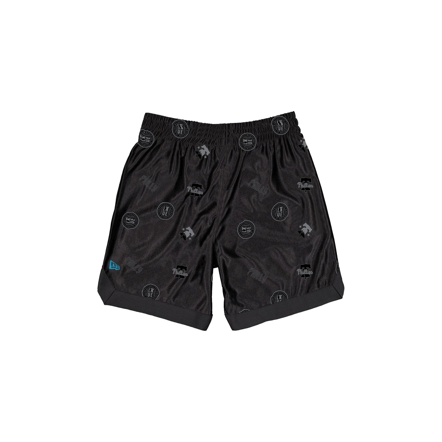 The Philadelphia Phillies 2026 City Connect Black Shorts feature a reflective Phillies allover-printed fabric with a screen-printed logo at the left leg and a woven team jocktag at the waist.