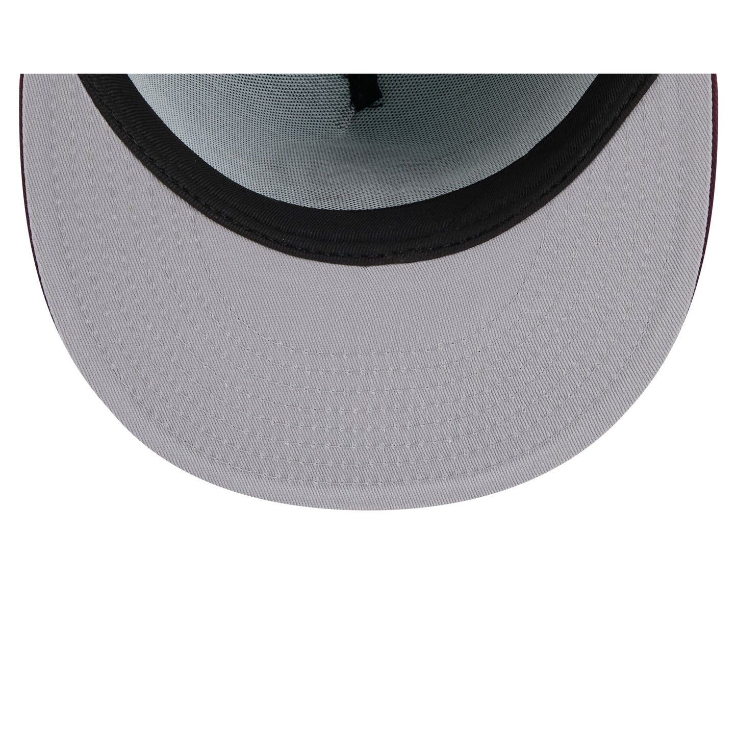 The Philadelphia Phillies Beach Kiss Blue 59FIFTY A-Frame Fitted Cap features an embroidered Phillies Cooperstown logo at the front panels with a matching MLB Batterman logo at the rear. Additional details include a Veterans Stadium patch at the right-wear side and a gray undervisor.