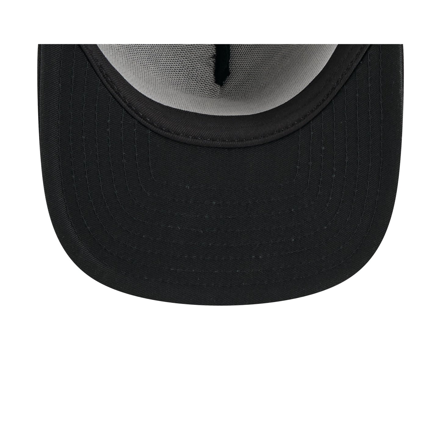 The Philadelphia Phillies Black Mesh 59FIFTY A-Frame Fitted Cap features an embroidered Phillies logo at the front panels with a matching MLB Batterman logo at a patterned mesh rear.