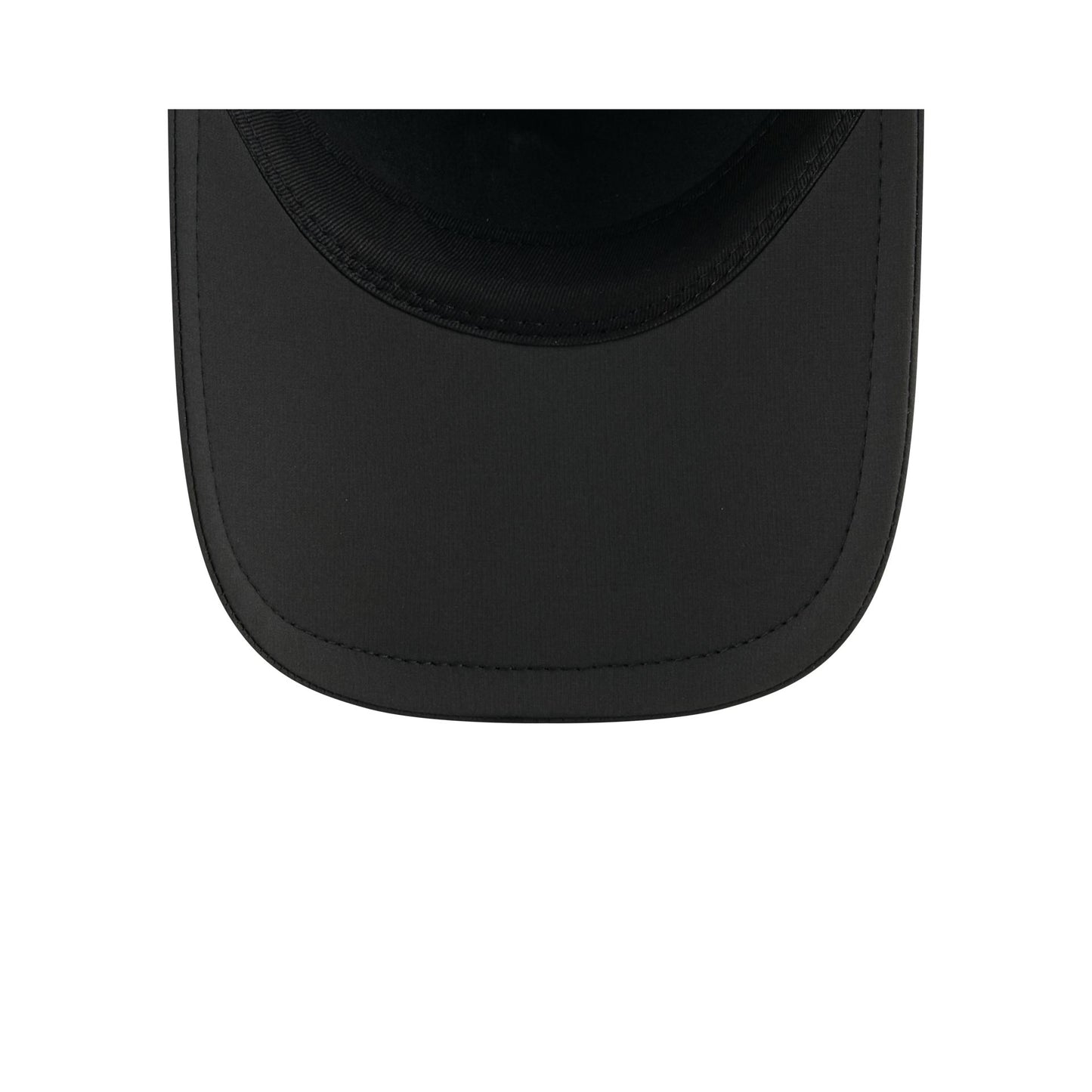 The Philadelphia Phillies Black Poly Runner Cap features a heat sealed Phillies logo at the front panels with mesh side panels. Additional details include a silicone patch above an adjustable drawstring closure at the rear.