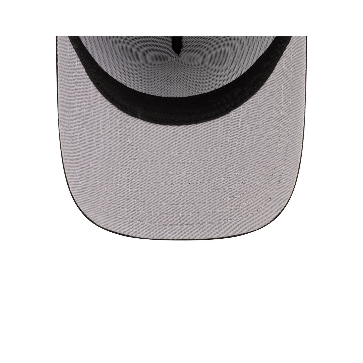 The Philadelphia Phillies Black Script Safety Pin 59FIFTY A-Frame Fitted Cap features an embroidered Phillies logo at the front panels with a matching MLB Batterman logo at the rear. Additional details include a removeable script team name pin, a pre curved visor, and a gray undervisor.