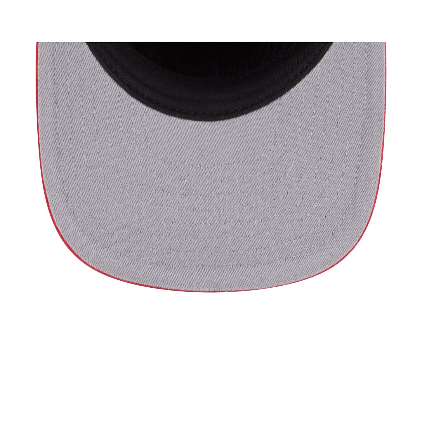 The Philadelphia Phillies Side Flag 59FIFTY A-Frame Fitted Cap features an embroidered Phillies Cooperstown logo at the front panels with a matching MLB Batterman logo at the rear. Additional details include a Shibe Park patch at the right-wear side, a team flag pin at the left-wear side, and a gray undervisor.